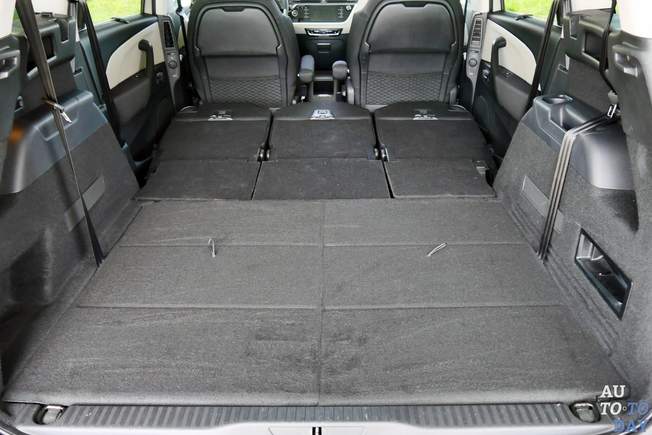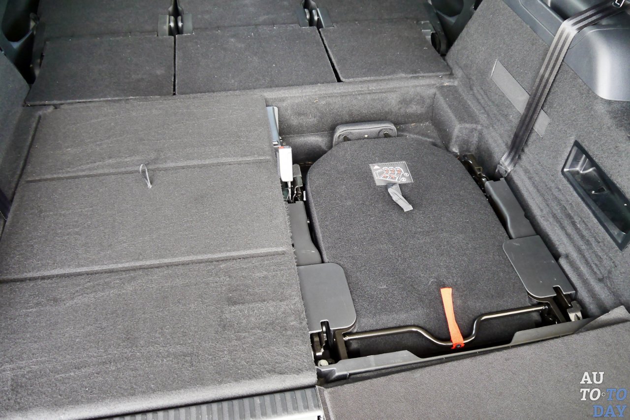 А как обстоят дела сзади? Пассажиры среднего ряда отрегулировали сидения и микроклимат под себя (в боковых стойках встроены дефлекторы и регуляторы обдува, каждое сидение двигается продольно на отдельных салазках). В нашем путешествии третий ряд был сложен, и весь образовавшийся объем в 645 л был занят нашей поклажей. Но поездки на короткие расстояния показали, что даже ваш покорный слуга с ростом в 183 см может некоторое время провести на «галерке». Хотя все же комфортнее там будет детворе.
