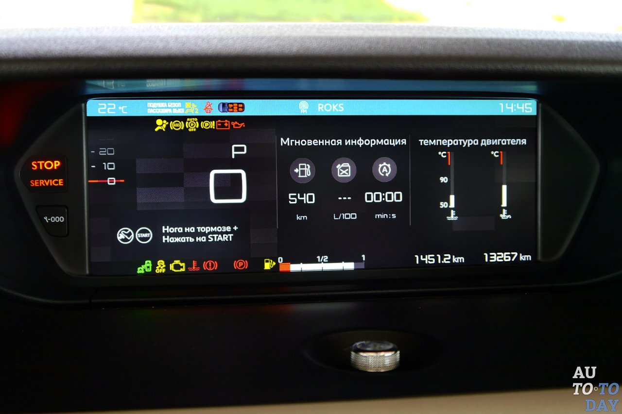 19 дюймов на двоих – именно такая суммарная диагональ двух цветных дисплеев (12 и 7 дюймов каждый) в салоне «Пикассо». Меньший из них – сенсорный, на него выводится управление климат-контролем, телефоном, навигационной системой и вообще всем тем, что есть в машине. Больший экран, расположенный по центру, но вверху – несенсорный, он выполняет роль щитка приборов, на нем также можно включить навигацию.