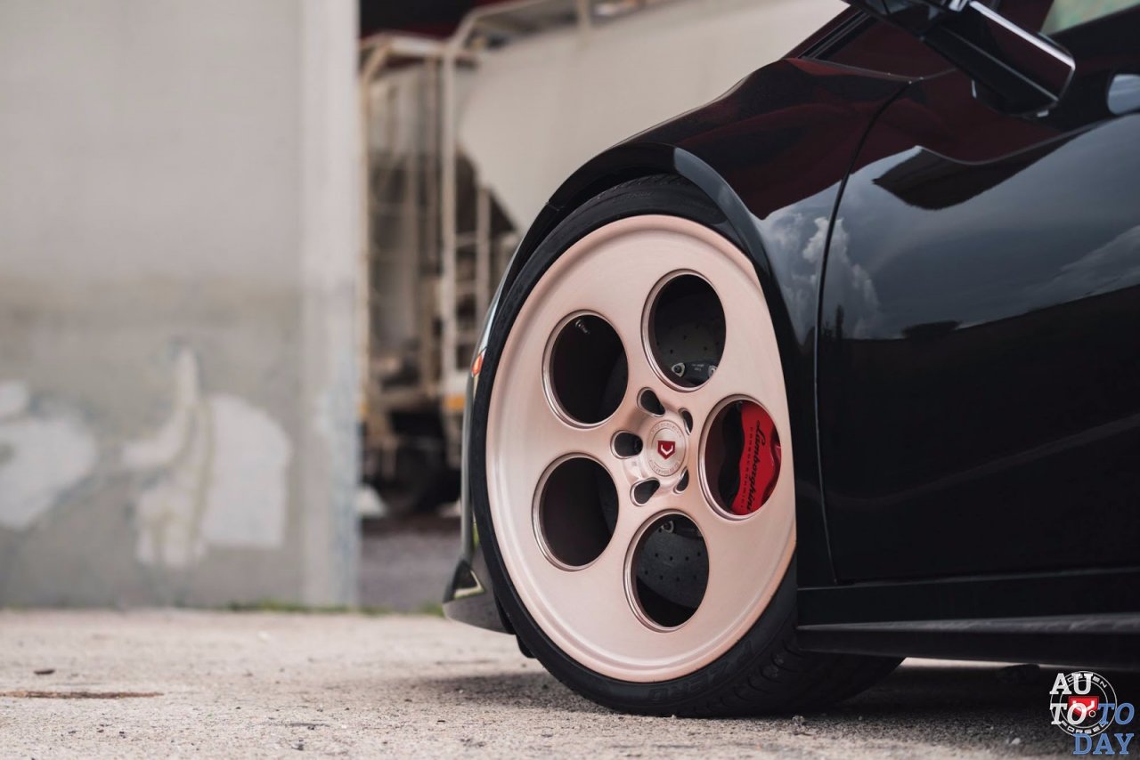 Сами колеса, любезно предоставленные ателье Vossen, имеют отделку из розового золота и, как колеса Countach, идентифицируются благодаря пяти крупными кругам.