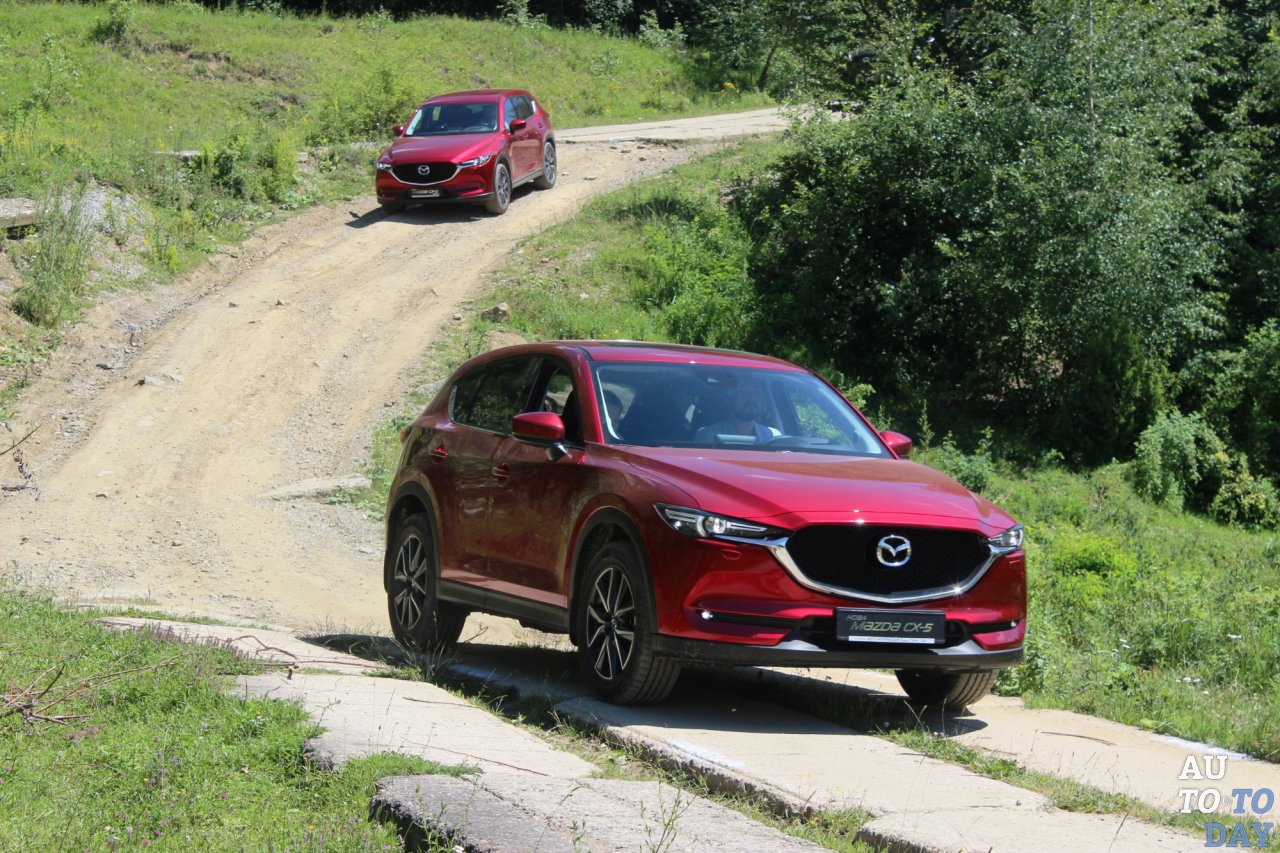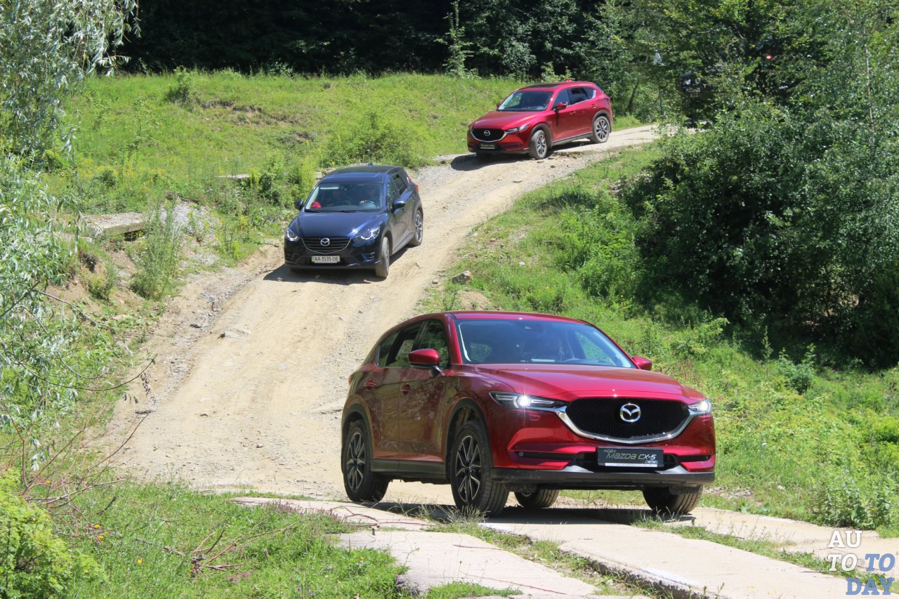 Новый кроссовер получил все знакомые поклонникам бренда силовые агрегаты. Речь идет о паре бензиновых двигателей объемом 2,0 и 2,5 литра на 150 и 194 л. с. соответственно и 2,2-литровом турбодизеле с 175 «лошадками». На презентации я выбрал дизель – хоть и мощность его не топовая в линейке силовых агрегатов, но нужно отдать дань спросу – дизели у нас в стране берут. Да и интересно все же. Двигатель семейства Skyactiv-D выдает 420 Нм, которые не срывают голову, но дают большую уверенность и чувство запаса тяги при резких обгонах и опережениях. Да что там говорить, затяжной 5-километровый подъем в Карпатах мы преодолели играючи, заставив наших коллег на «бензинках» переключаться вниз. Мы же выехали на высшей, шестой передаче.