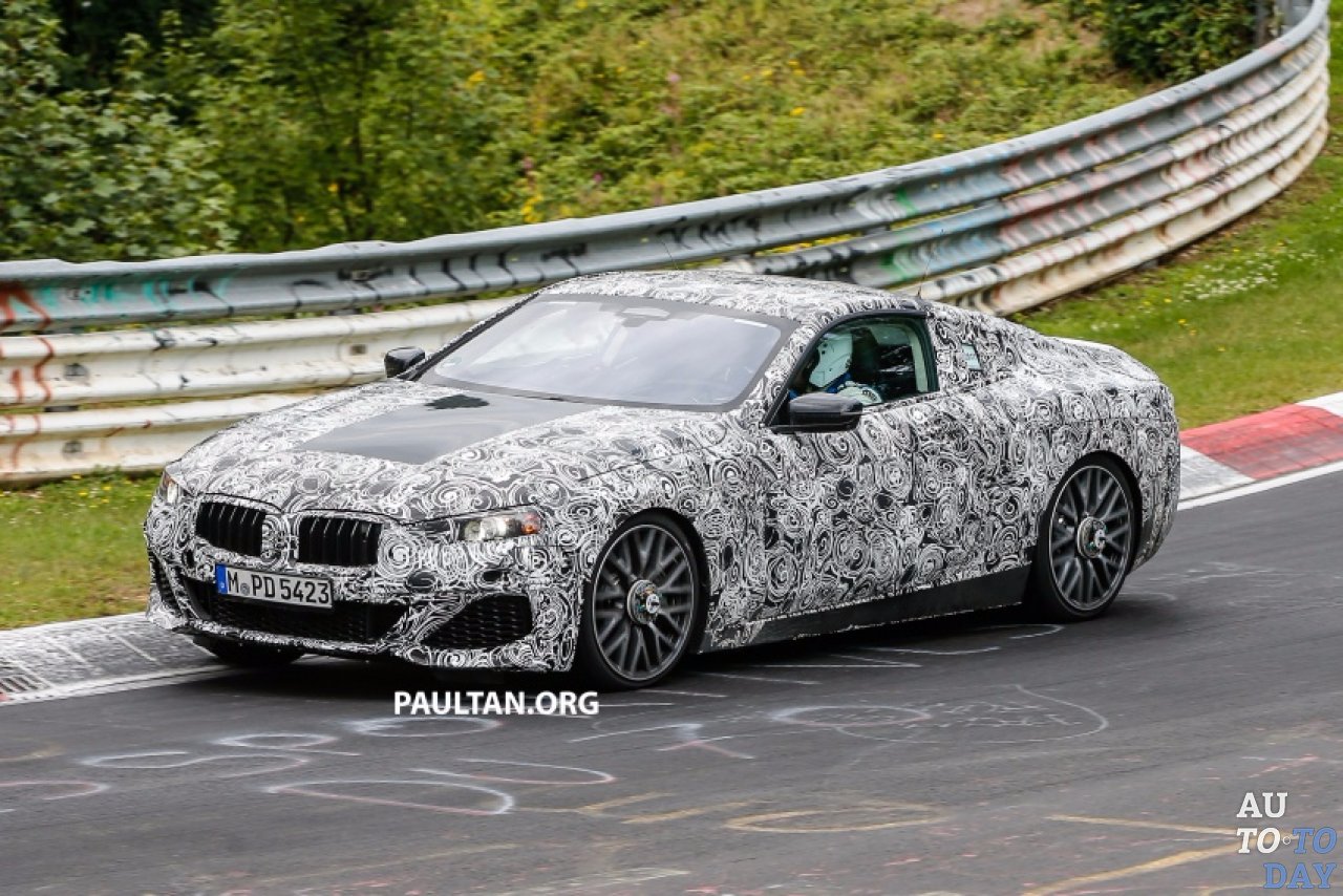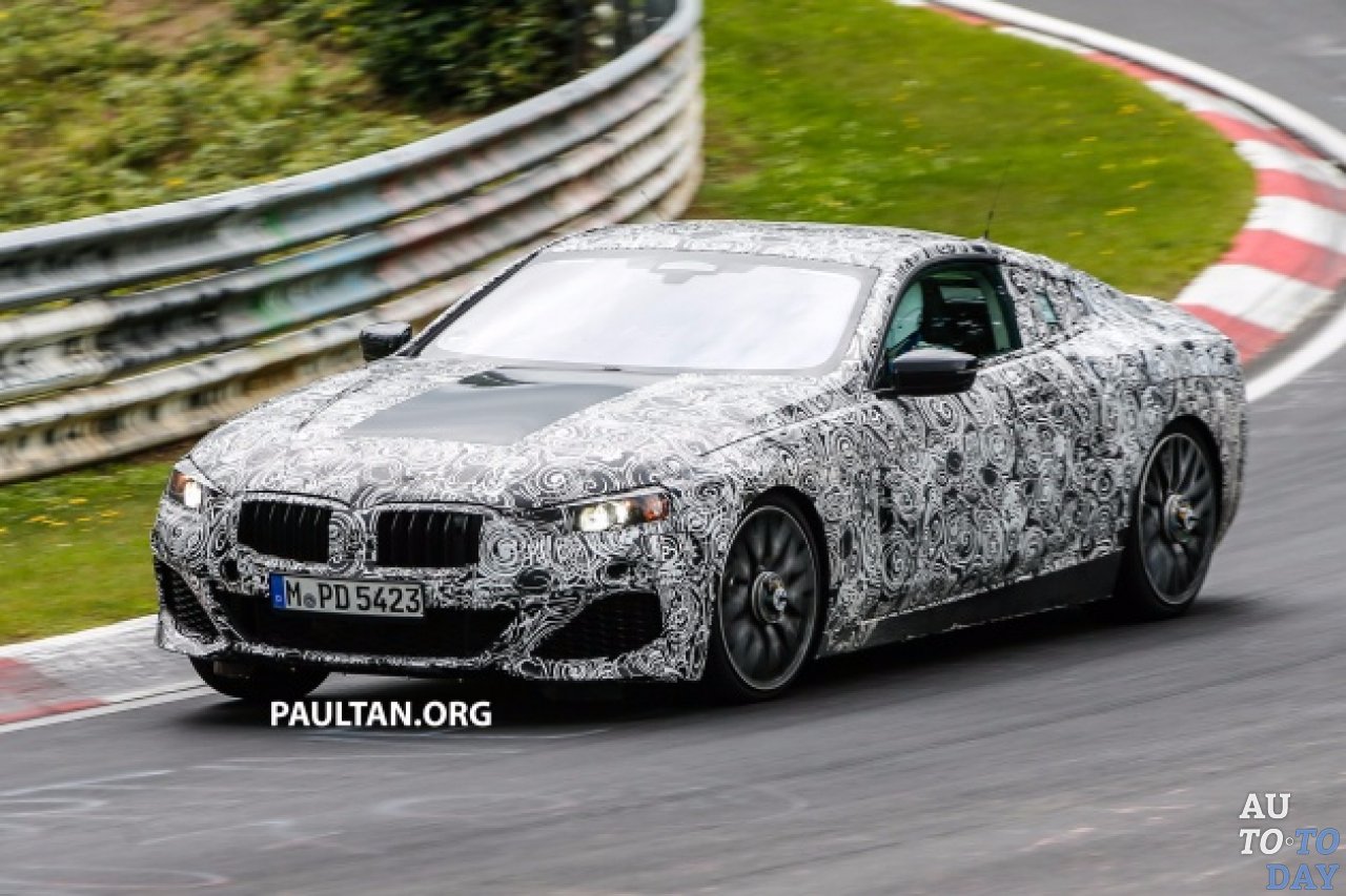 BMW 8-Series снова был пойман шпионами, на этот раз, когда он проходит испытания в Нюрбургринге. Прототип, который мы видим здесь, выполнен в форме купе, который станет одним из двух типов кузова для предстоящей 8-Series наряду с кабриолетом.