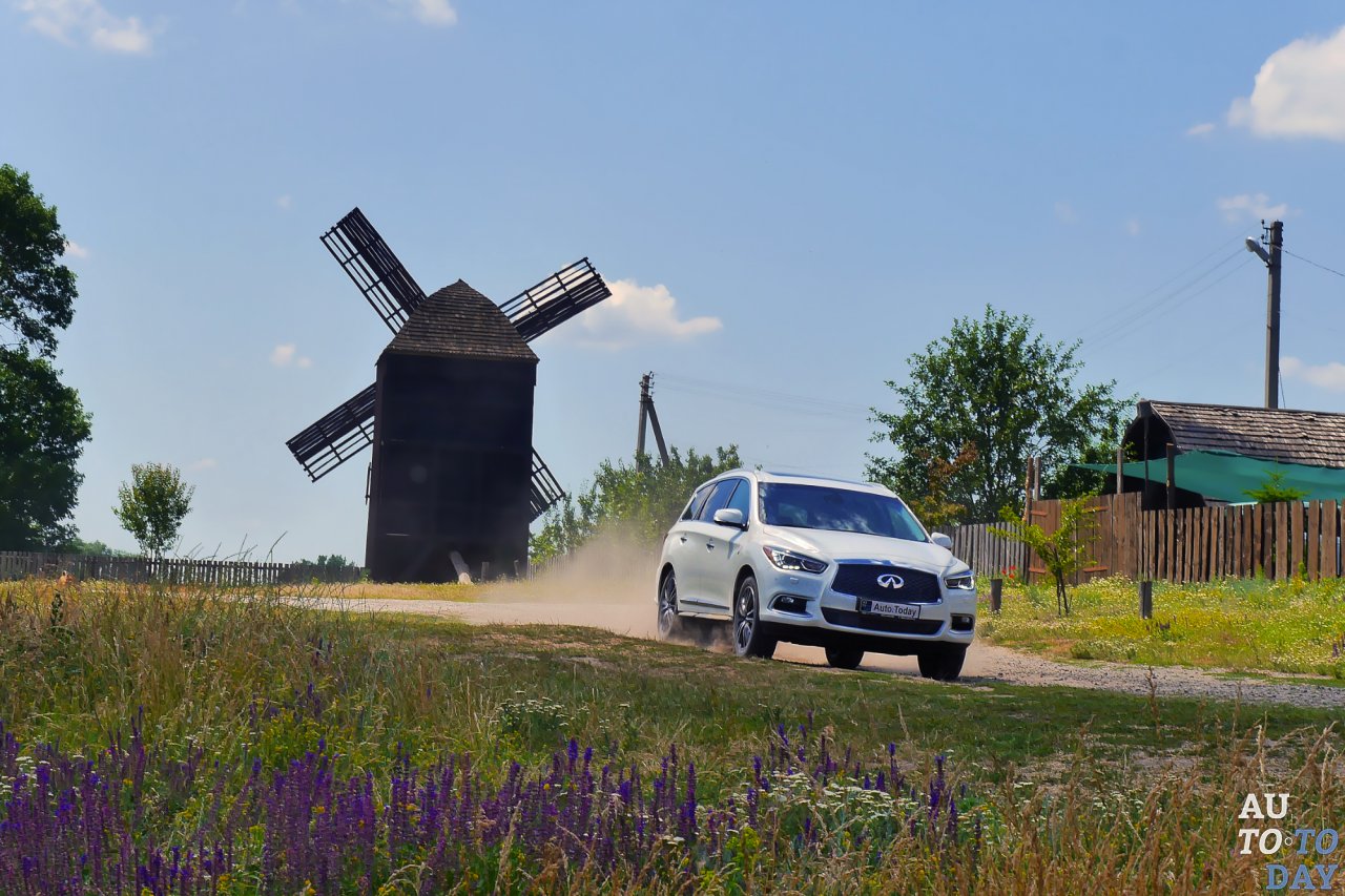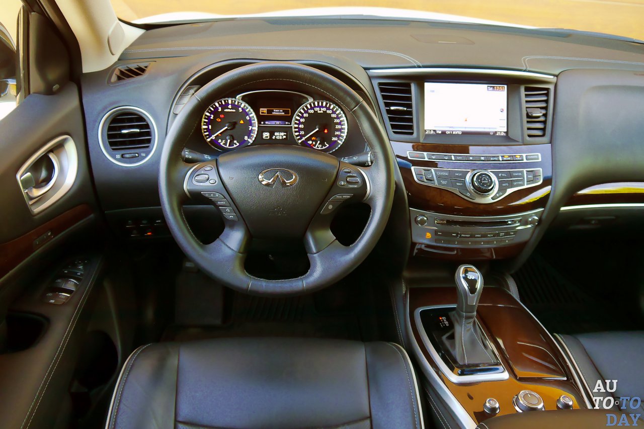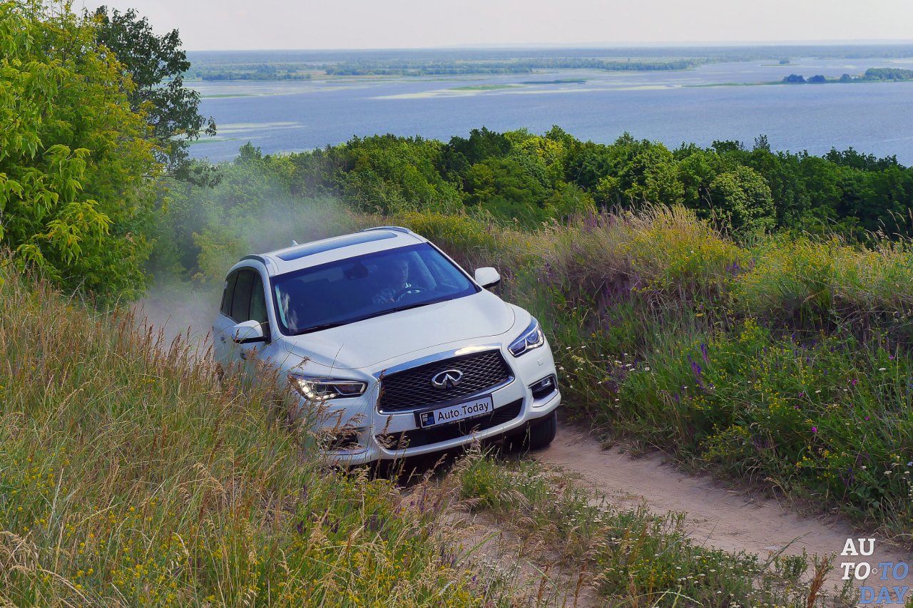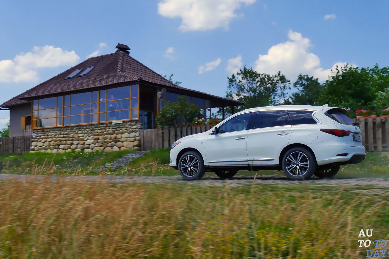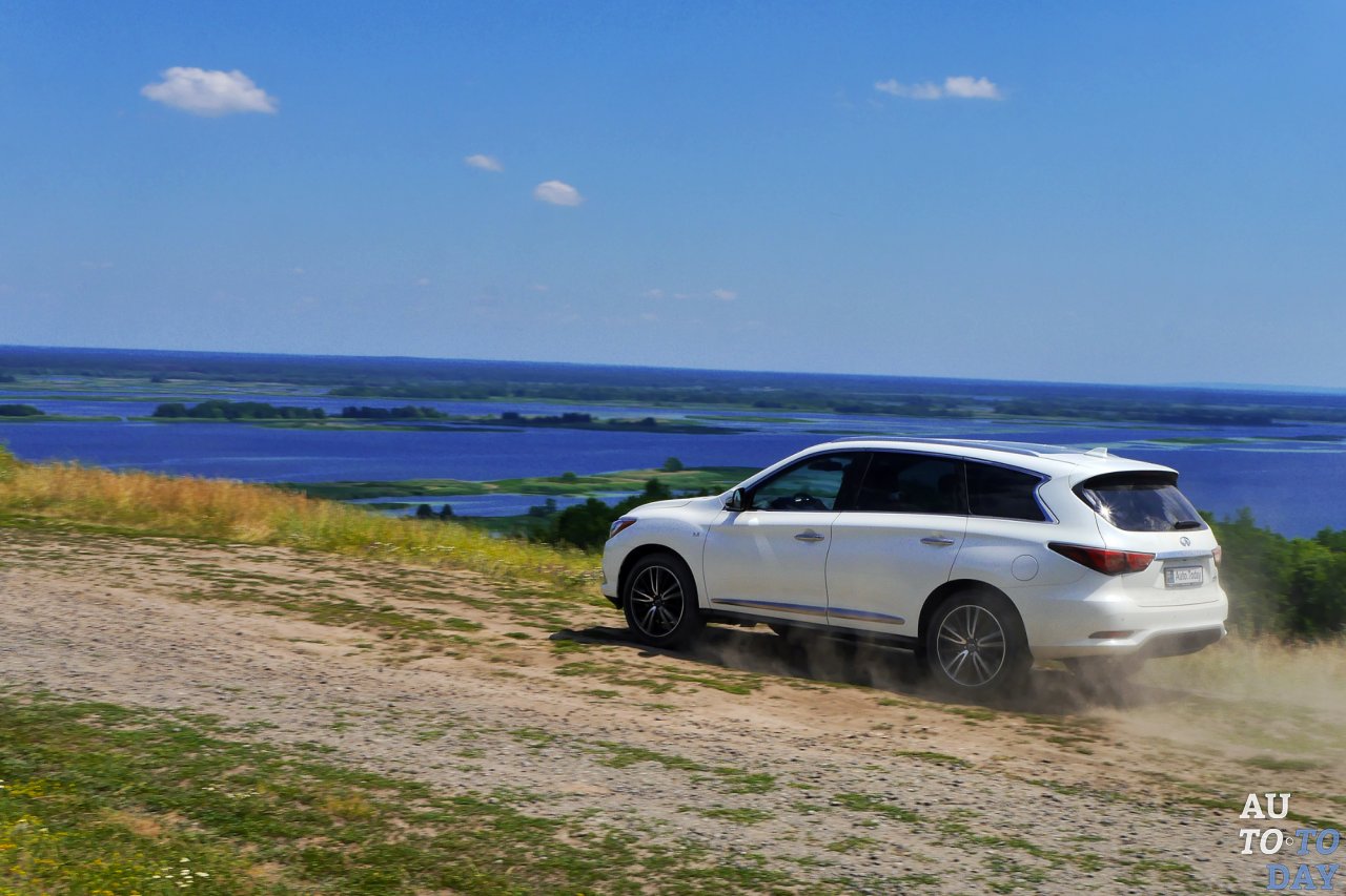 Подвеска, спереди со стойками «МакФерсон» и многорычажная сзади, по характеру ближе к комфортной. Отчеты усовершенствований авто в ходе рестайлинга говорят о том, что инженеры улучшали жесткость подвески и управляемость QX60. Конечно, у такого высокого авто существует некоторая тяга к излишним кренам, но в целом кроссовер поворачивает, цепко держась за дорогу. Неплохо заточенная под украинские направления ходовая не очень переваривает только острые стыки асфальта и выступающие канализационные люки. Остальные же типы неровностей подвеска «глотает» почти неощутимо для пассажиров. Тормозная система отличается некоторой «ватностью», при этом усилие равномерно распределяется на всем ходе педали.