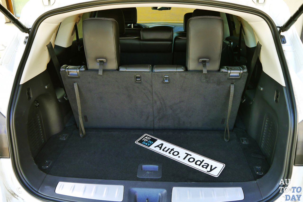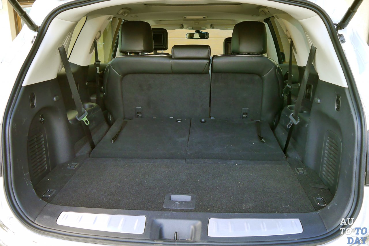 Часть третья, удивительная. На кого обычно рассчитаны места галерки в 7-местных кроссоверах? Будем честны: на детей младшего школьного возраста. Но Infiniti QX60 – это исключение из правила. Если второй ряд отодвинуть в центральное положение, то сзади даже человеку с ростом в 180 см будет куда деть ноги. Разве что голова будет немного касаться потолка. Кстати, для посадки назад средний ряд складывается и сдвигается вперед полностью. Объем багажного отсека изменяется в диапазоне от 447 (с тремя рядами) до 2166 литров (оставили только переднюю пару кресел).
