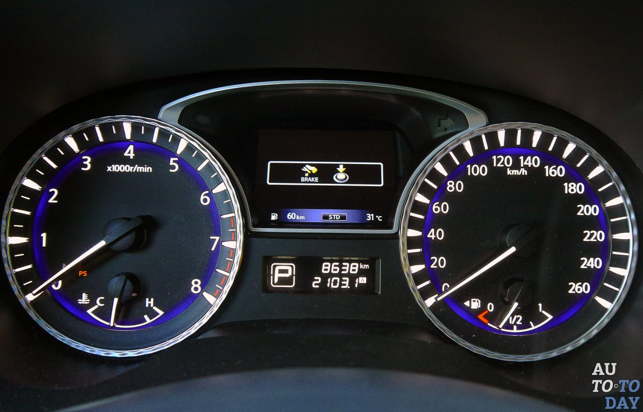Однозначно описывать характер героя нашего теста было бы неправильно. Дело в том, что характеров несколько: набор предустановленных режимов («Спорт», «Эко», «Стандарт» и «Снег») меняют поведение машины почти кардинально. Конечно, самым спокойным «японец» становится в экорежиме. Мало того, что машина очень вяло реагирует на нажатие акселератора, сама педаль даже как бы возвращается назад, не давая нажимать на себя (срабатывает функция «экопедаль»). Даже по городу в таком режиме авто потребляет 15-15,5 литра на 100 км при официально заявленном расходе в 14,4 л. В спокойном и равномерном движении по трассе со скоростью 90-110 км/ч «Инфинити» тратит около 9 литров на 100 км пробега. Спортивный и обычный режимы отличаются между собой не так разительно, в любом случае мотор оперативно реагирует на акселератор. При разгоне стрелка тахометра зависает на 4-4,5 тыс. оборотов, но автомобиль динамично ускоряется – вариатор, знаете ли.