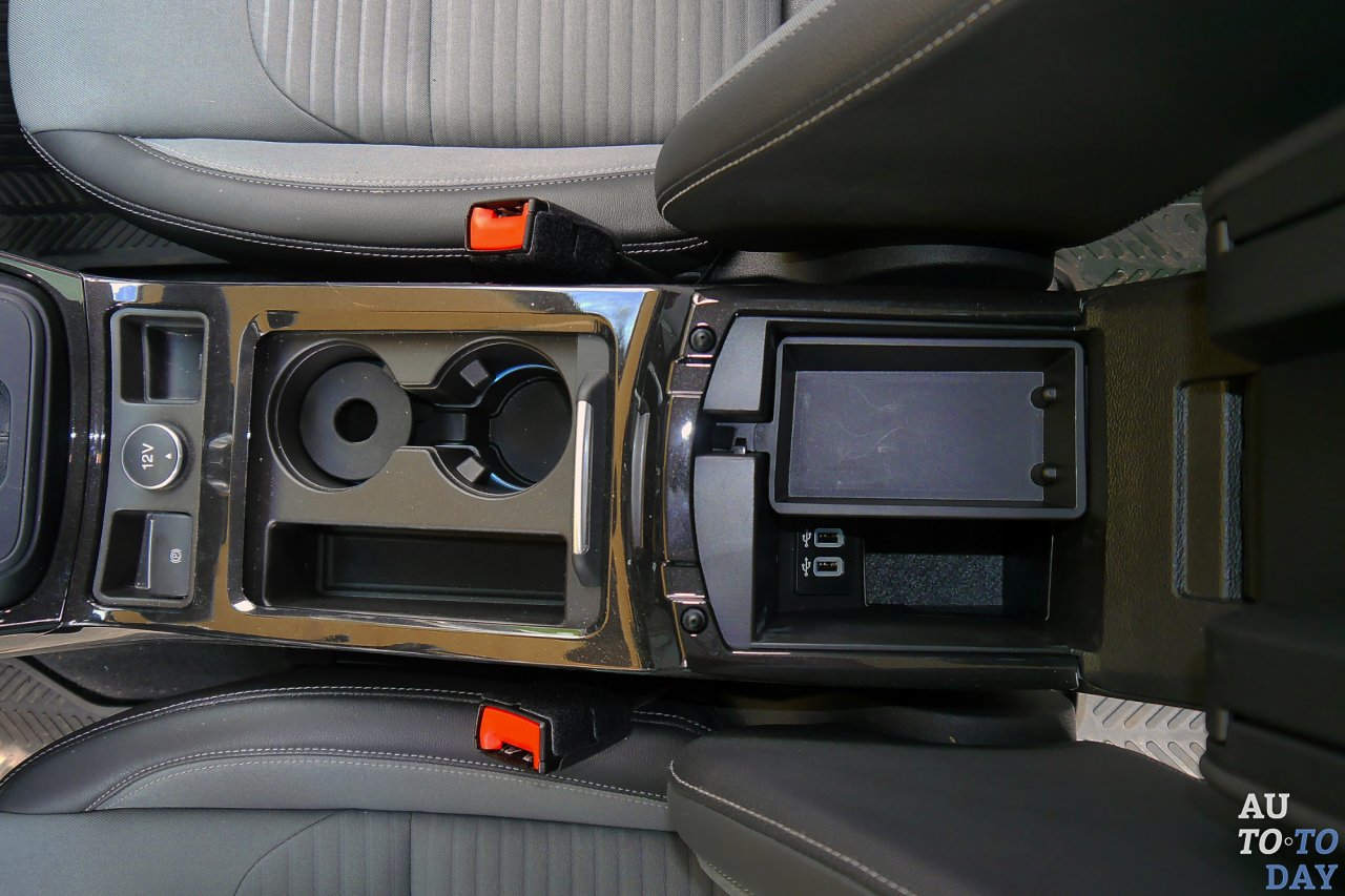 Торпедо с фирменной полочкой возле дисплея выглядит футуристично.