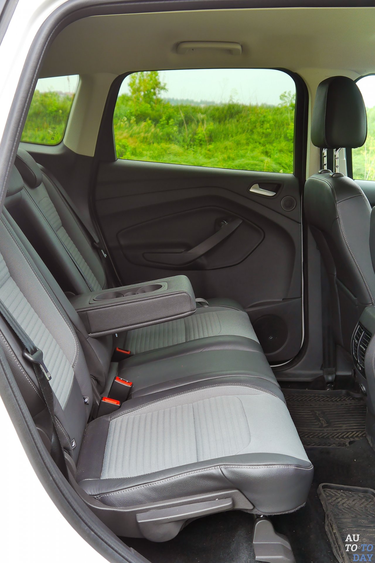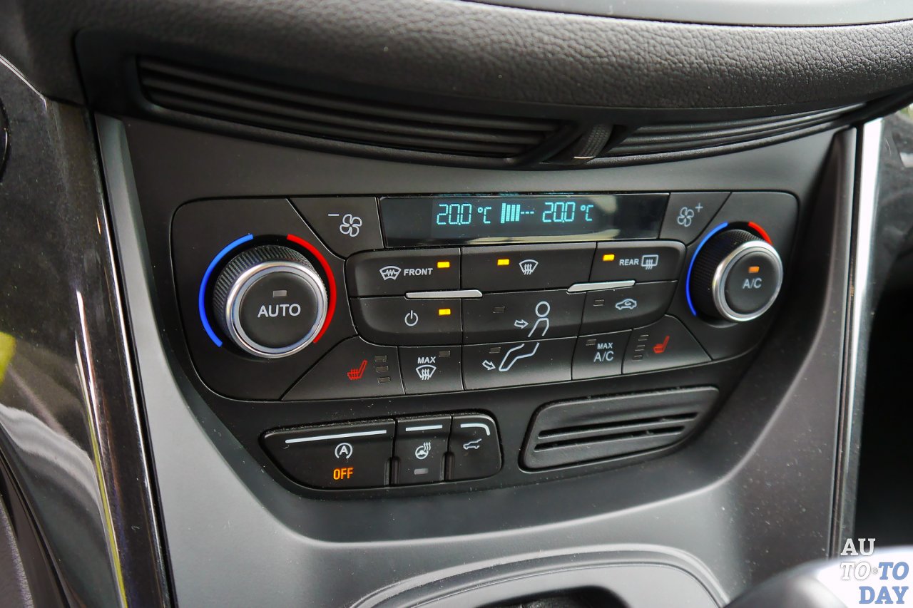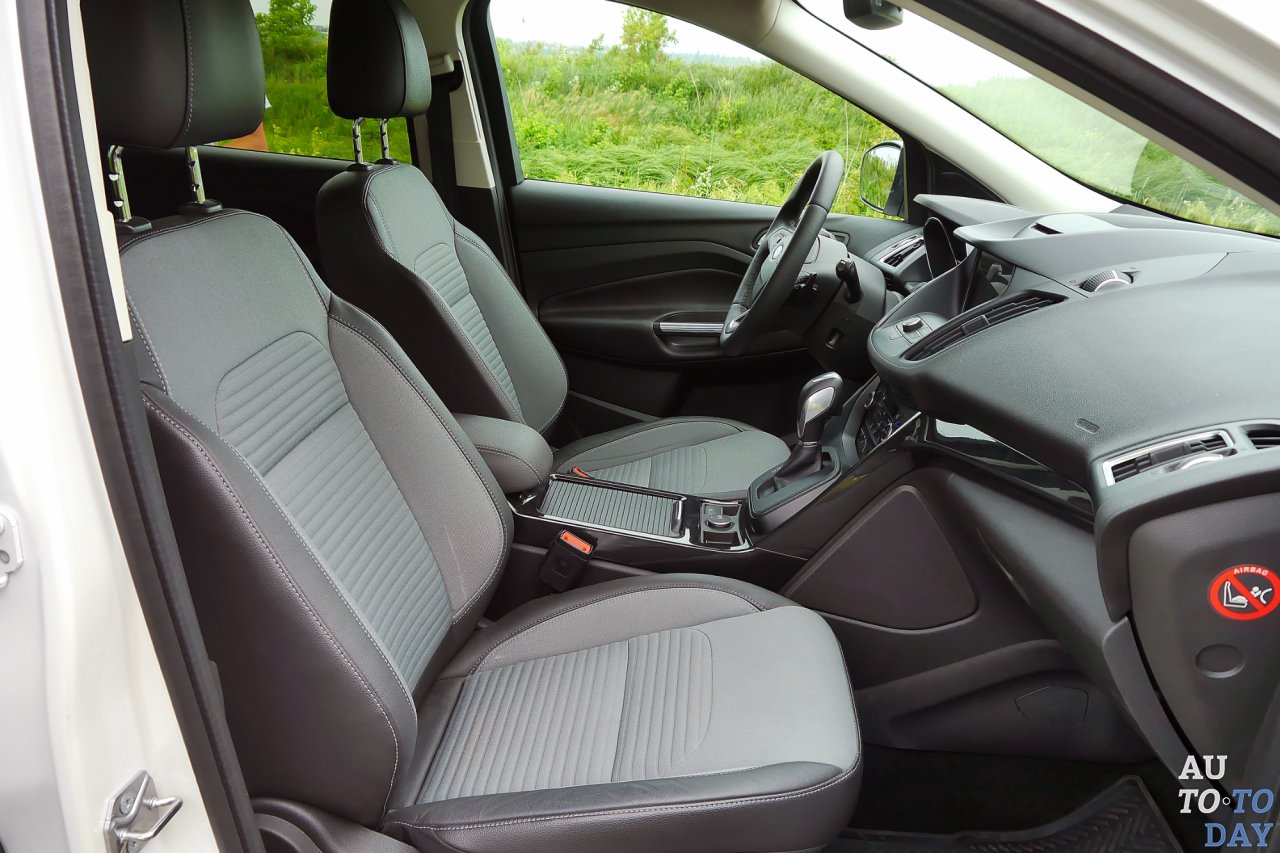 В салоне «Куги» изменения заметны даже невооруженным глазом. Так, рулевое колесо получило более выраженные наплывы под хват руками, а также стильные кнопки, отвечающие за мультимедиа и круиз-контроль. Также слегка изменились рамочки вокруг циферблатов на щитке приборов. И днем и ночью, благодаря фирменной лунной подсветке и аккуратным синеньким стрелкам, данные с приборов считываются легко. По умолчанию информация на красочном цветном дисплее бортового компьютера выводится мелким шрифтом, но его размер можно изменить в настройках.