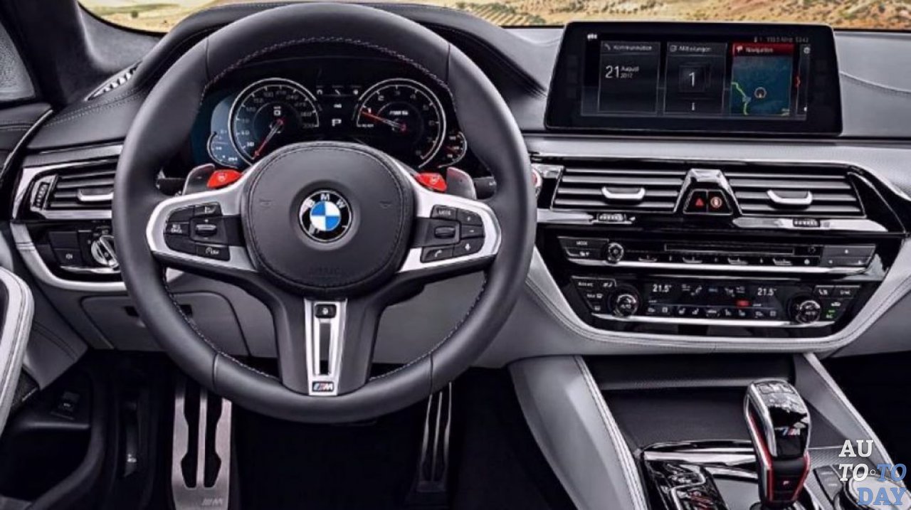 Незадолго до мирового дебюта фотографии суперседана BMW M5 2018 года просочились в Интернет. Как и ожидалось, больших сюрпризов они не показали. BMW несколько лет назад уже представлял тонко замаскированный прототип. На изображениях можно увидеть полностью раскрытый M5, что позволяет сравнить его нынешний стиль с другими моделями 5-Series. Спереди красуется черная решетка радиатора фирменной ноздревидной формы с хромированной отделкой, а также смелый новый бампер с увеличенными воздухозаборниками. В больших колесных арках стоят черно-серебристые диски с золотыми тормозными суппортами. На корме бросаются в глаза четыре крупные выхлопные трубы, расположенные попарно. Также стоит отметить черный диффузор и тонкий элегантный спойлер на крышке багажника.