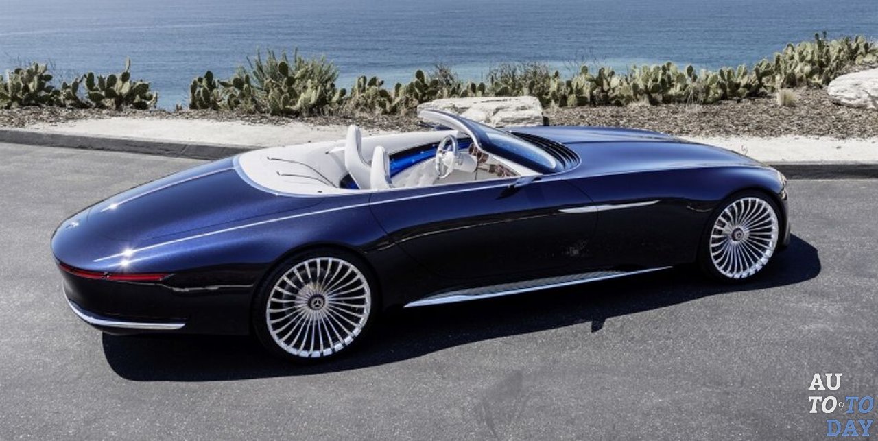 Концепт Vision Mercedes-Maybach 6 Cabriolet – это последний взгляд компании Mercedes-Benz на то, каким должен быть по-настоящему роскошный кабриолет в будущем. Двухместная модель с открытым верхом была продемонстрирована на площадке Pebble Beach Concours d'Elegance в Калифорнии. Автопроизводитель говорит, что новый электрический автомобиль является воплощением великолепной автомобильной моды высокого уровня среди эксклюзивных кабриолетов. Длиной почти шесть метров, модель напоминают классический дизайн в стиле ар-деко с длинным капотом и множеством воздушных, плавных линий. Особенно впечатляет задняя часть. Она выполнена в виде изящного хвоста роскошной яхты. Дополняет потрясающий внешний вид темно-синий экстерьер под названием Nautical Blue Metallic, а также недавно разработанные 24-дюймовые легкосплавные диски с центральным замком в розовом золоте. Этот оттенок сейчас можно встретить во всех новых электромобилях автопроизводителя.