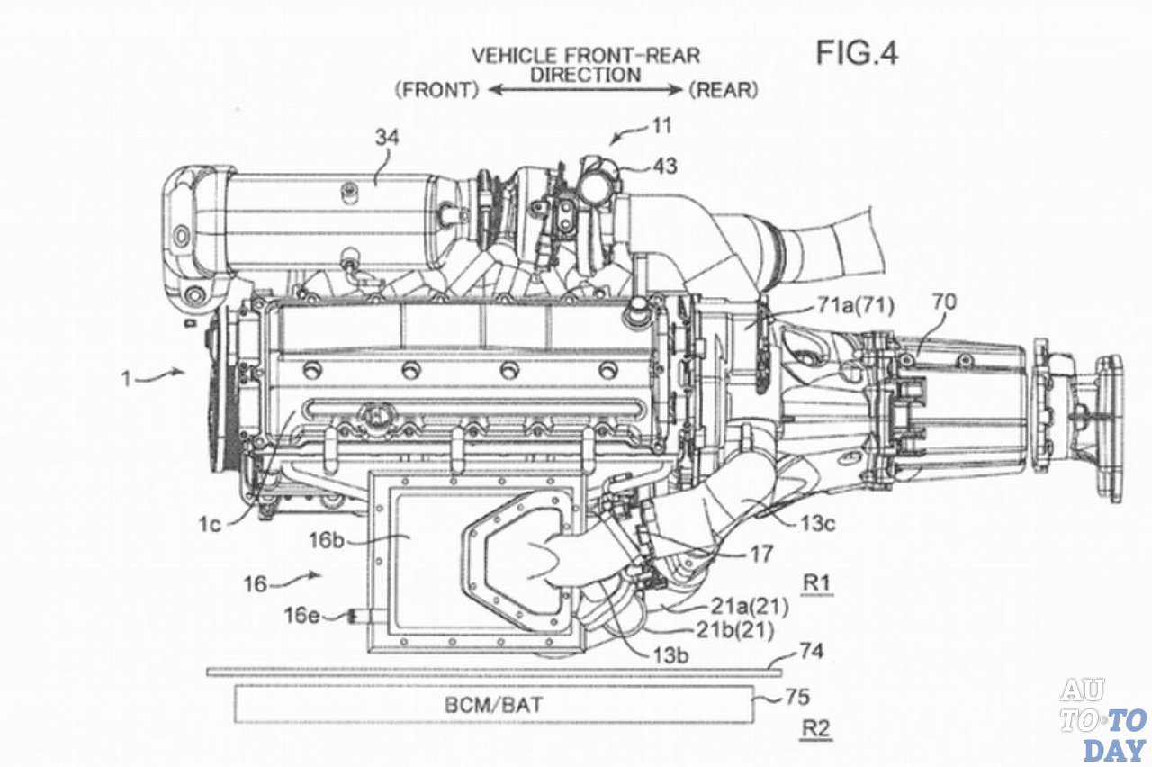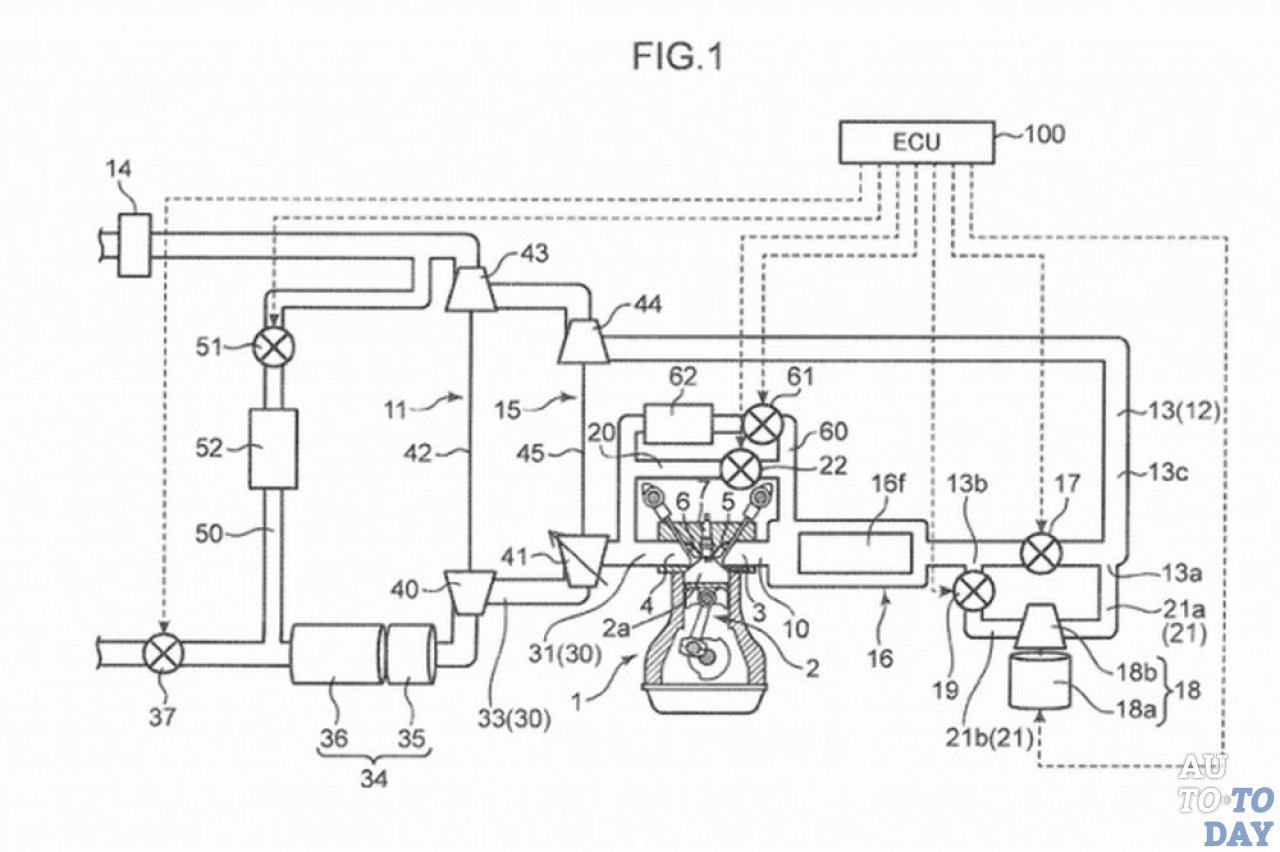 Mazda имеет не только технологию однородного воспламенения заряда, которую намерена представить в следующем году. Японский производитель также подал заявку на патент трехтурбинного двигателя, который недавно был опубликован Управлением по патентам и товарным знакам Соединенных Штатов (USPTO). Диаграмма и чертеж, поданные в USPTO, показывают бензиновый двигатель, имеющий пару обычных турбонагнетателей, которые работают параллельно с электрическим нагнетателем. Электрический элемент должен обеспечивать низкую мощность, в то время как двойной турбонаддув обязан производить быстрое накопление энергии. Электрическая турбина, вероятно, будет отключена от фирменной емкостной системы i-ELOOP, которая в Mazda 6 восстанавливает энергию во время торможения и преобразует ее в электричество. Оно накапливается в конденсаторах и используется для таких устройств, как кондиционер, звуковая система, освещение и прочее электрооборудование.