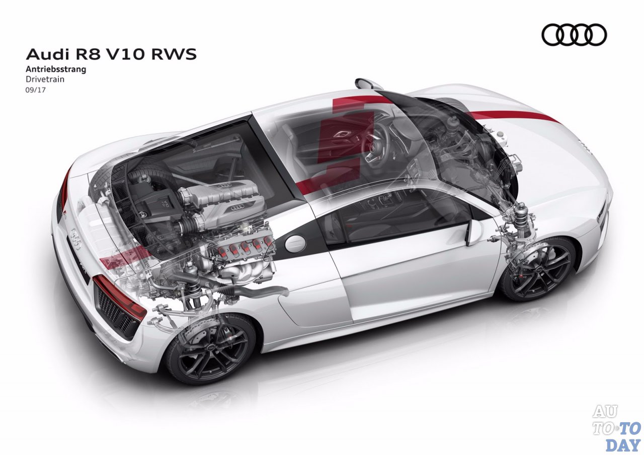 Новый R8 V10 RWS будет доступен как в версиях Coupe, так и в Spyder, и, как вы уже могли догадаться, он исключительно заднеприводный.