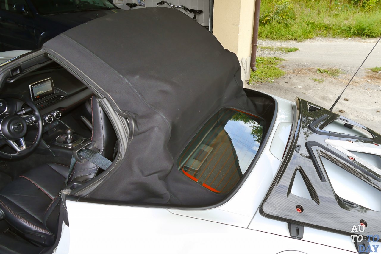 Мы с «Маздой» дважды были участниками похожих по содержанию диалогов. «Алло, встретишь нас завтра в Борисполе?», - спрашивали друзья, возвращающиеся с евротрипа. «Нет, у меня в машине всего одно вакантное место», – отвечаю. Не все понимали, как такое может быть, но ничего не поделаешь. Однако, возвращавшемуся из командировки коллеге не отказал, предупредив еще по телефону, что для большого чемодана места у нас с «Маздой» нет. (Точнее, есть на все той же карбоновой наружной полке, но под рукой – ни строп, ни хрестоматийных велосипедных резинок с крючками). Зато у меня были две кепки, которые я возил в бардачке между спинок сидений – для себя и попутчика. Несмотря на неплохую аэродинамику открытого салона, после 100 км/ч по шее начинает гулять неприятный сквознячок. Особенно, если говорить о езде по бориспольской трассе или подобной магистрали. А болеть нынче дорого.