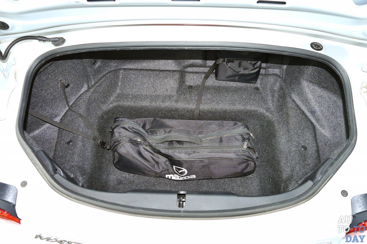 Меня раздирали противоречивые чувства – с одной стороны, эти 130 литров и огромные сумки, с другой – на крышке багажника «Миаты» есть наружная полка-багажник из карбона. Но как я буду выглядеть в центре нашей столицы с этими баулами из далеких 90-х на самом видном месте? Но оказалось, 130 литров – это не так уж и мало: немного манипуляций и обе сумки умещаются под крышкой багажного отсека. Конечно, немалая погрузочная высота (по сути багаж укладывается в глубокий люк) затрудняет процесс.