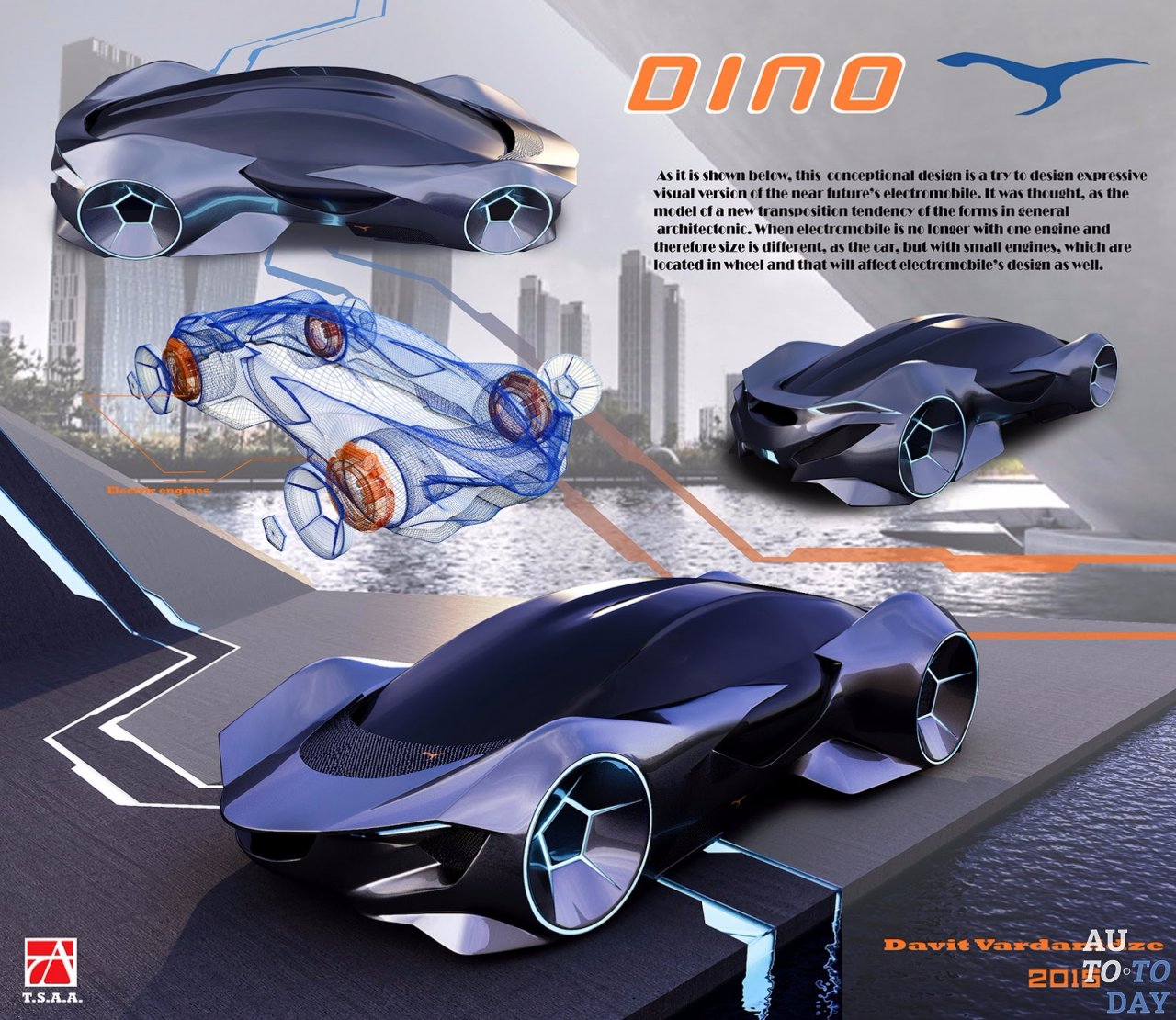 Получивший название Dino, исследование было создано дизайнером Дэвидом Варданидзе, который хочет, чтобы мы знали, что автомобиль полностью электрический, с двигателями, управляющими колесами вместо основного двигателя.