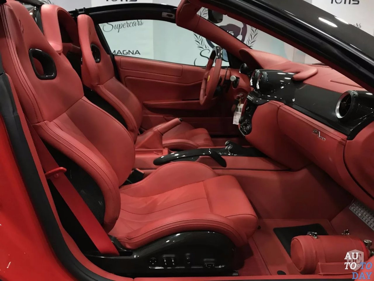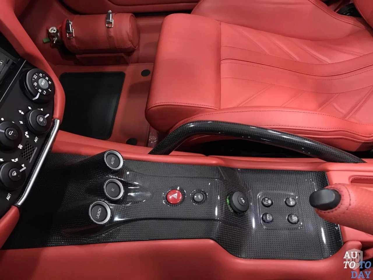 Внутри салон, рулевое колесо, дверные ручки и приборная панел почти исключительно купаются в красной коже. Фактически, единственными элементами интерьера, которые не являются красными, являются либо углеродное волокно, металл или пластик.