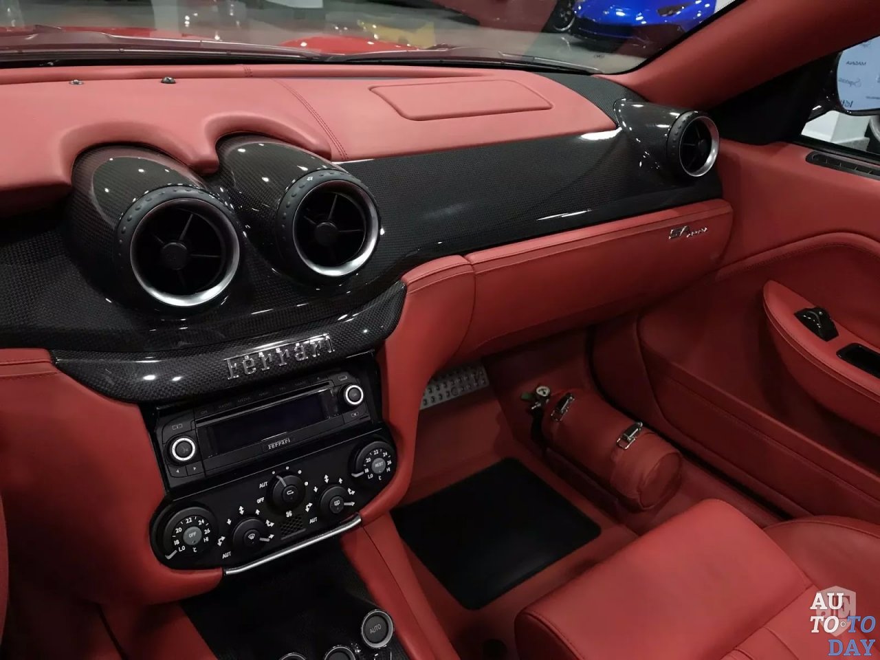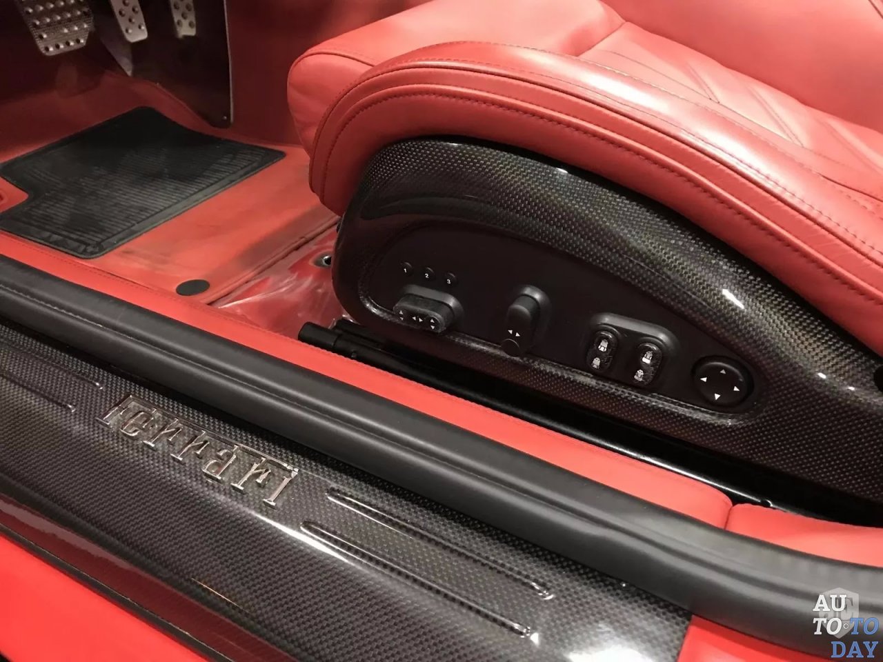 Этот конкретный экземпляр был импортирован в Испанию из Катара и окрашен в цвет Rosso Corsa. Он также оснащен многочисленными акцентами из углеродного волокна, включая дверные ручки и надпись Cavallino Shield на обеих передних панелях.