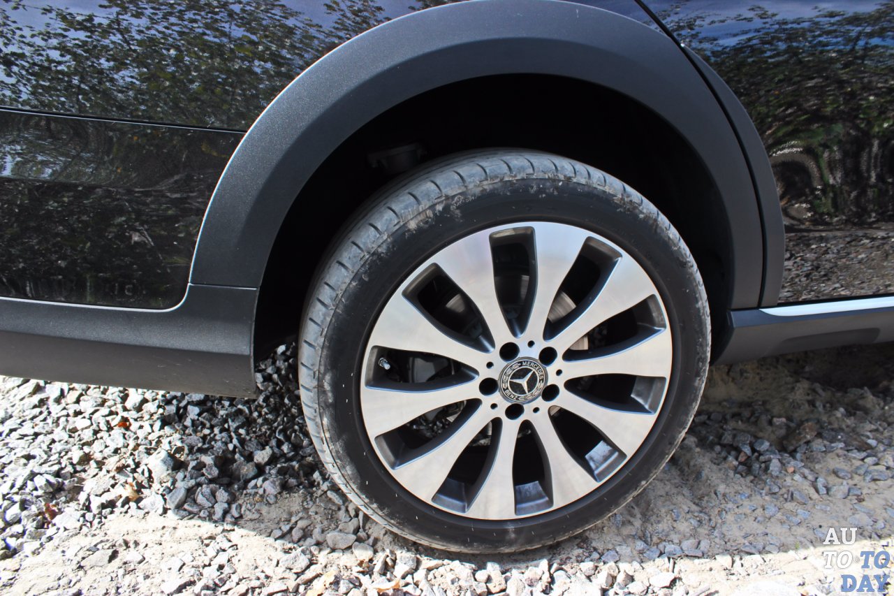 На тестовом автомобиле установлены низкопрофильные 19-дюймовые колесные диски размерностью 245/45. Конечно, это вариант больше для дорог с твердым и ровным покрытием, нежели для бездорожья. Как и подобает машине, которая создавалась для нечастых выездов на бездорожье, у All-Terrain инженеры увеличили клиренс. Прирост в сравнении с обычным универсалом составил 29 мм. 15 мм из них дали изменения настроек пневматической подвески (которая доступная уже в «базе»), оставшиеся 14 мм – это возросший профиль стандартных покрышек.
