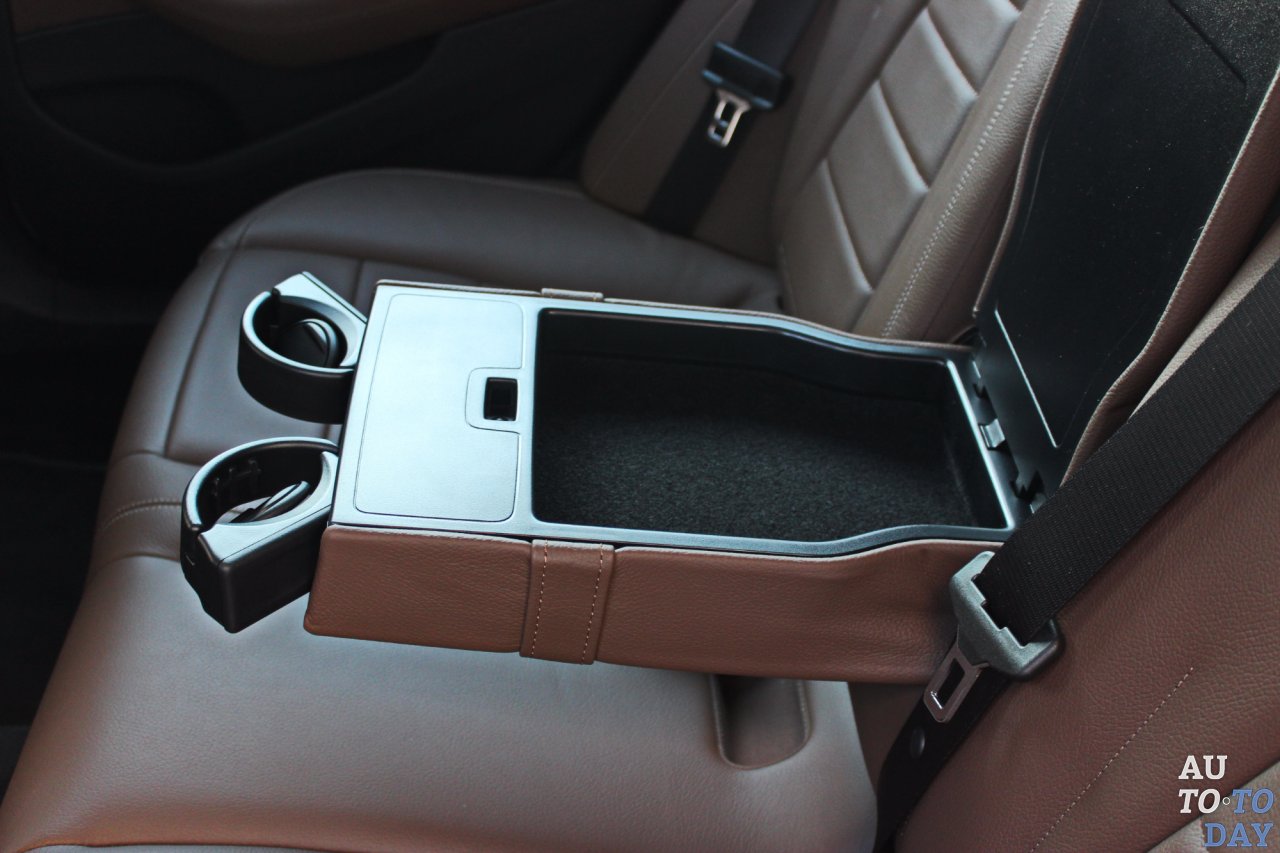 В подлокотнике - ниша для гаджетов и пара подстаканников.
