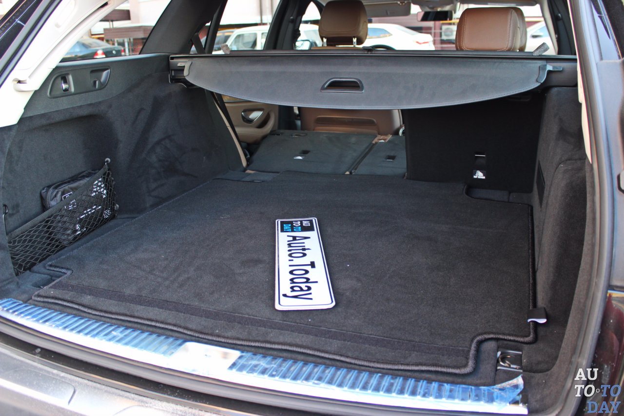 Кожаные кресла с полностью электрическими регулировками я бы не назвал жесткими, но в то же время они отлично держат в поворотах и на неровностях. Несмотря на то, что машина позиционируется для легкого бездорожья, в салоне все коврики – тканевые, опционально предлагается и белый салон. В распоряжении сидящих сзади – подогрев сидений, 12- и 220-вольтовая розетки, и пара воздуховодов. Багажный отсек объемом 670 литров легко увеличивается до внушительных 1820 литров, стоит только сложить спинки второго ряда. Сделать это помогут электроприводы как из багажника, так и с салона. Под полом спрятался компрессор и домкрат, а также сложенный ящик, как м не подумалось, для овощей и фруктов, ведь выполнен он из пищевого пластика. Если же его перевернуть, то получаем небольшой складной столик.