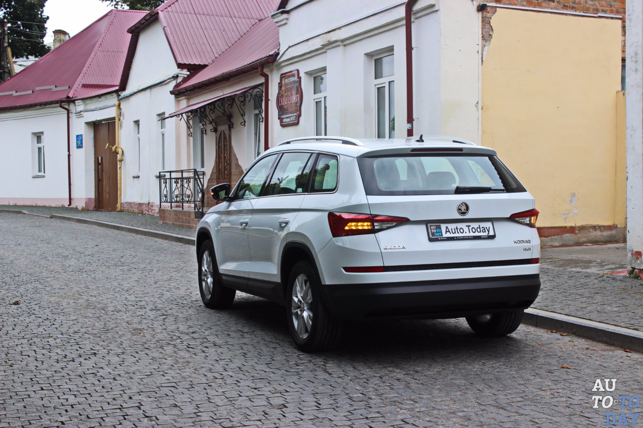 Внешне отличить комплектацию автомобиля (тестовый кроссовер выполнен в версии Style) от более скромных можно по большим колесным дискам и встроенным датчикам парктроников в бамперах. На этом видимые отличия заканчиваются. Выразительным «чех» кажется особенно спереди и с кормы, где выделяются острые неправильной формы фары головного света и фонари. В профиль машина кажется уже несколько знакомой и не привлекает столько внимания других автомобилистов, сколько привлекала, когда мы знакомились с бензиновым кроссовером весной. К тому же, за это время обновились в духе «Кодьяка» Octavia и представили меньшего «полноприводника» Karoq.