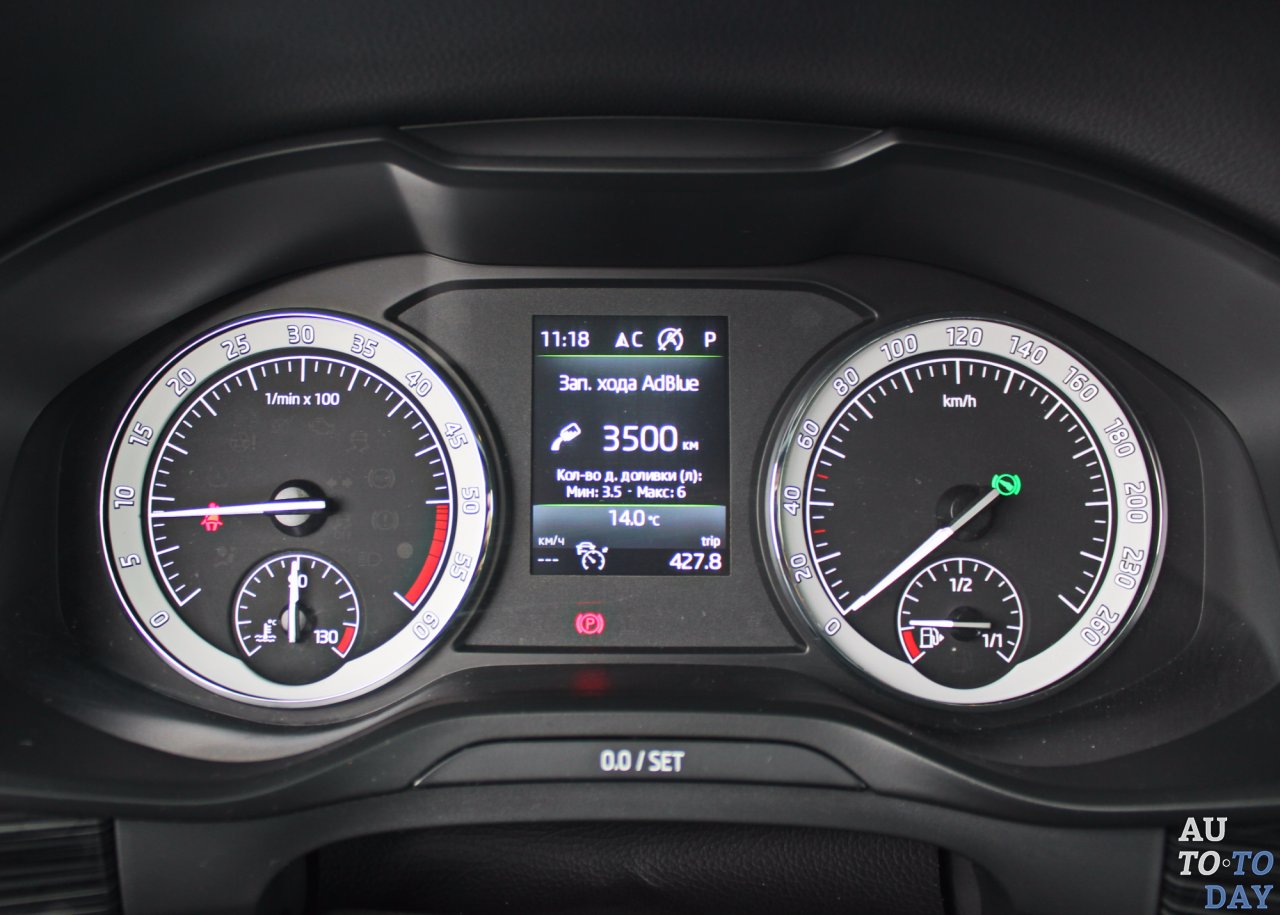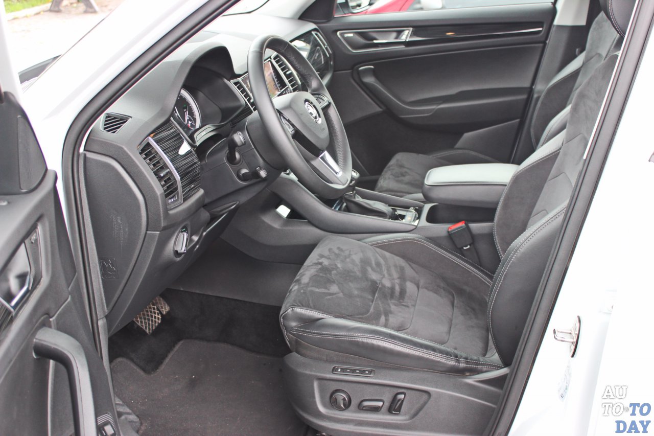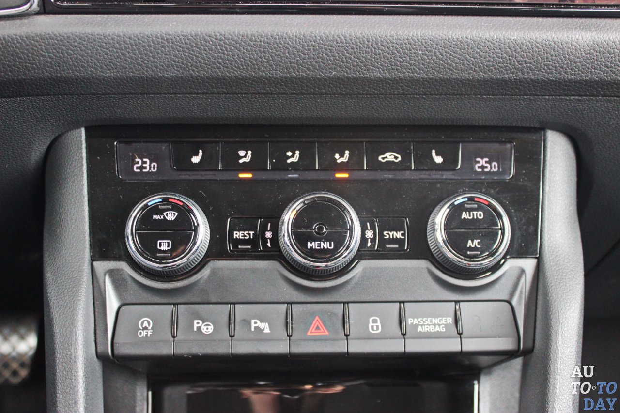 Несмотря на ужасную погоду снаружи, в салоне нам удалось устроиться с комфортом. Климатическая установка отлично справлялась с периодически запотевающим лобовым стеклом, а заднее стекло и боковые зеркала высыхали благодаря подогревам. Даже при частом использовании кондиционера на лобовое стекло, сидящим сзади было тепло и комфортно за счет собственной, третьей, зоны климат-контроля. Посадка за рулем настраивается легко благодаря привычным «шкодовским» ползункам на внешней стороне кресла, рядом с ними находятся кнопки трехпозиционной памяти.