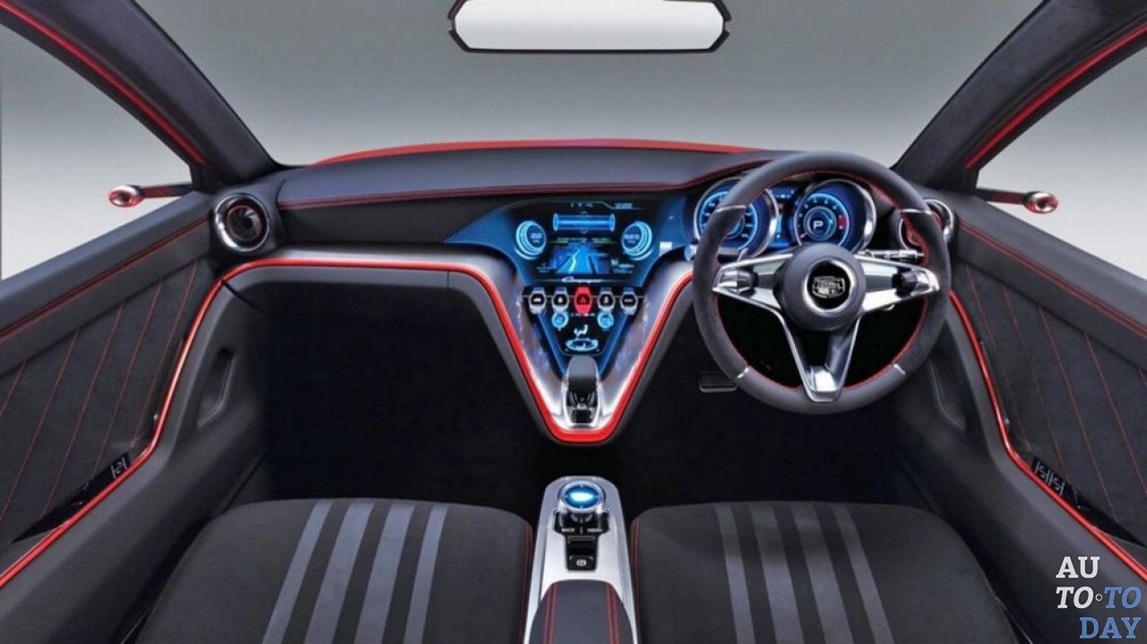 Внутри показана приборная панель и блок управления информационно-развлекательной системой, которые плавно обрамляют рулевое колесо с относительно тонким ободом. Красная контрастная строчка и замшевая отделка добавляют спортивного вкуса, а хромированные яркие элементы еще больше подчеркивают эту атмосферу. Концептуальный автомобиль Daihatsu DN Compagno, предназначенный для четырех человек, может иметь под капотом 1,0-литровый двигатель с турбонаддувом или 1,2-литровый гибридный силовой агрегат.