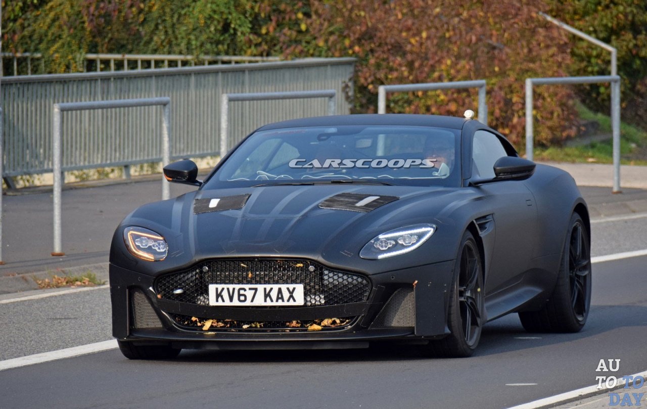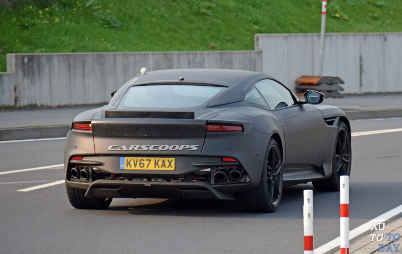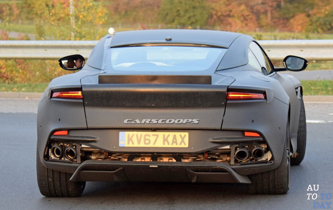 Показанный на шпионских фото Aston Martin Vanquish имеет значительно более агрессивный взгляд, чем модель DB11. Черную решетку радиатора из сотовой сетки окружают уникальные светодиодные фары. Очень эффектно смотрятся большие воздухозаборники и передний сплиттер. Выше находится знакомый капот с маскировочными пятнами, которые, вероятно, скрывают крупные вентиляционные отверстия.