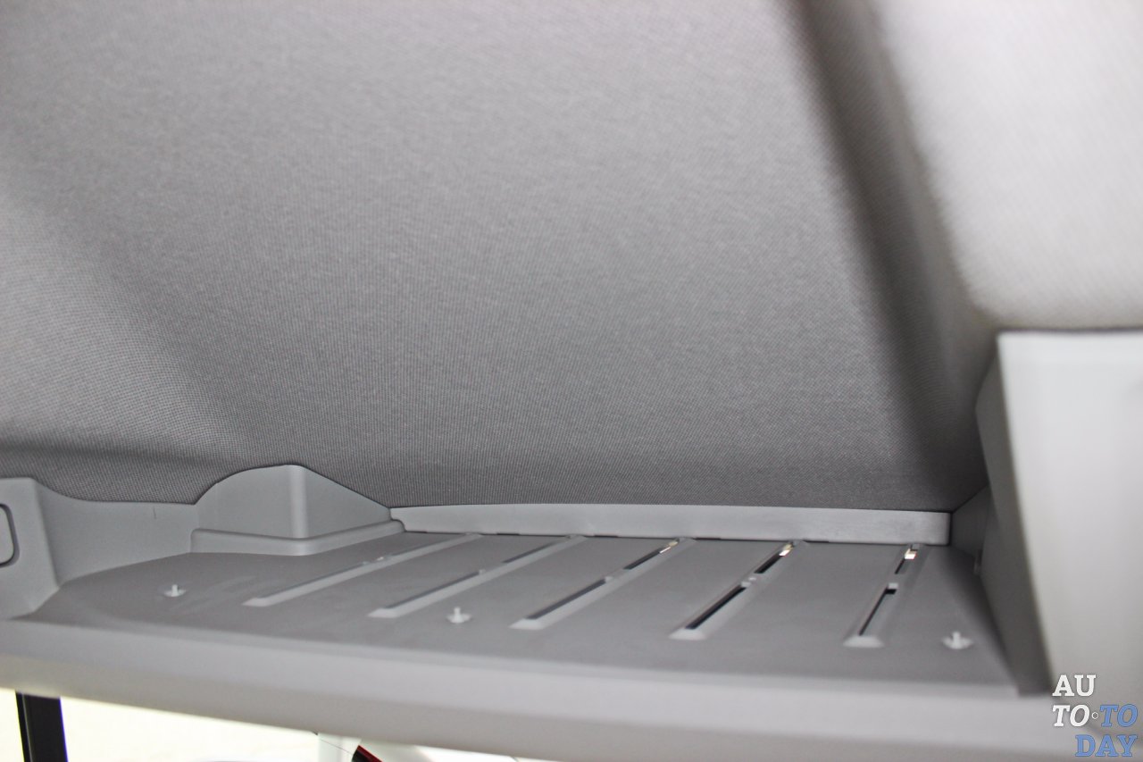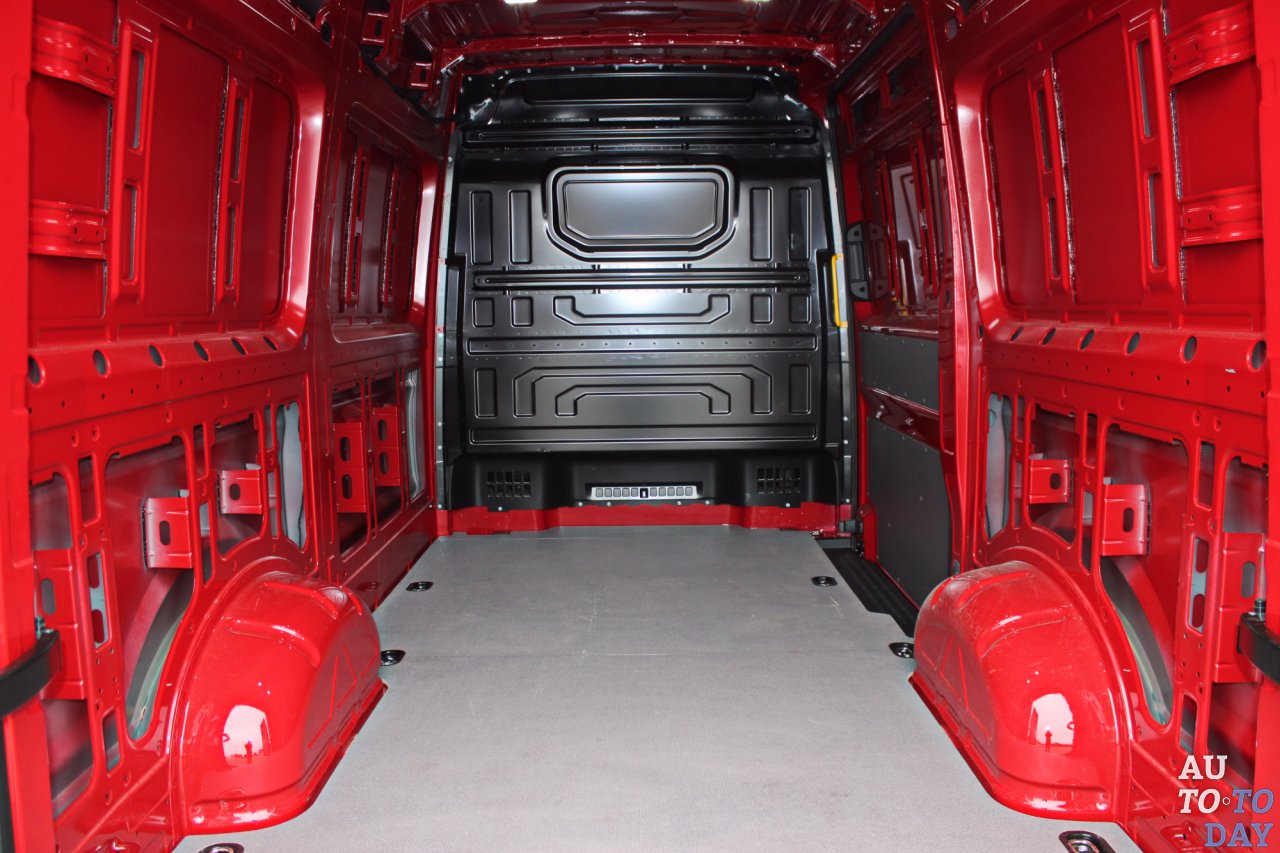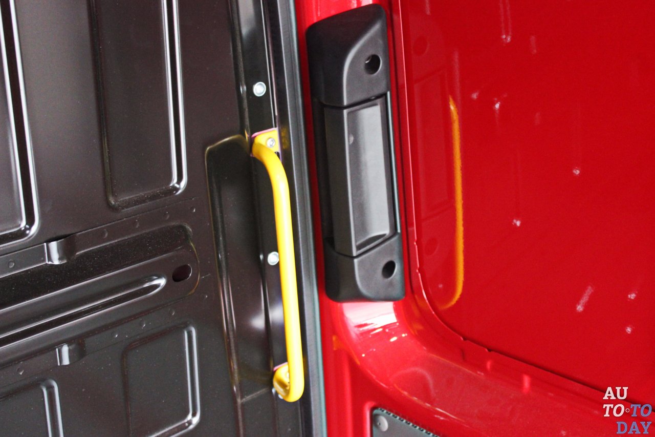 Расстояние между колесными арками в грузовом отсеке равно всего 1380 мм. Казалось бы утилитарный грузовой отсек также не лишен приятных опций. На крыше по периметру расположились четыре плафона освещения, которые включаются автоматически при открытии дверей, или принудительно, а в задней части (условно за фонарем) находится 12-вольтовая розетка. Пол устлан деревом, по которому легко совать тяжелые коробки, не царапая металл пола.