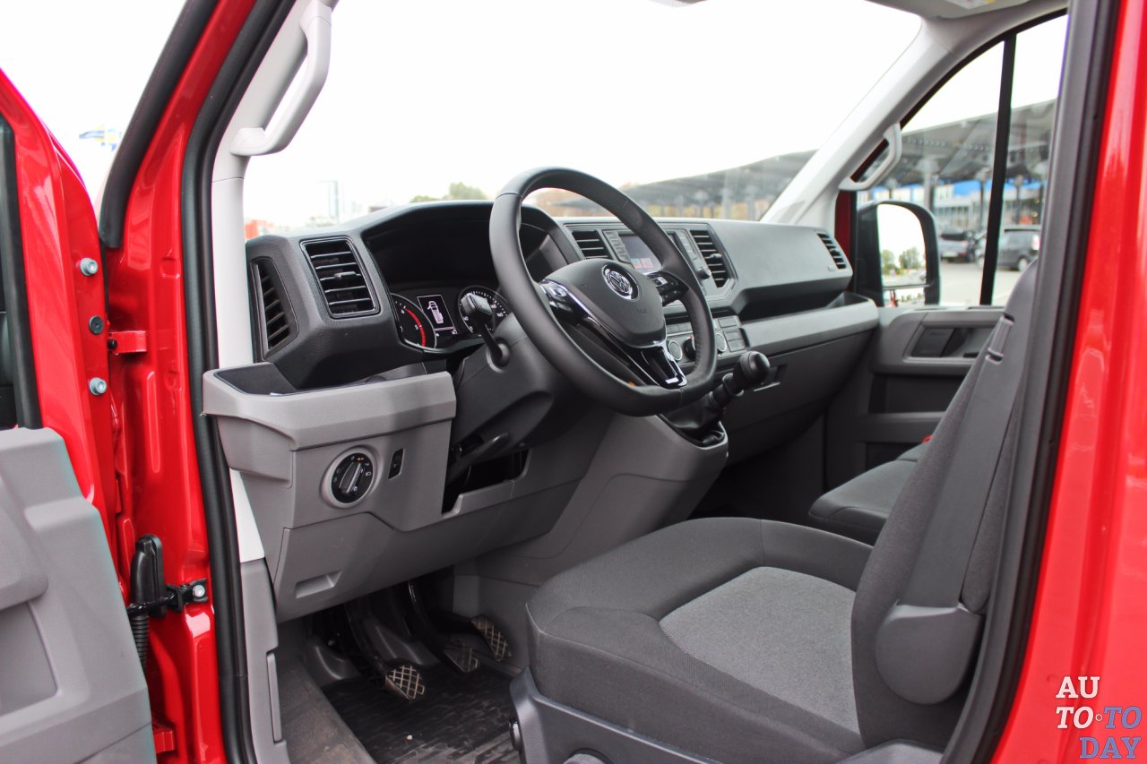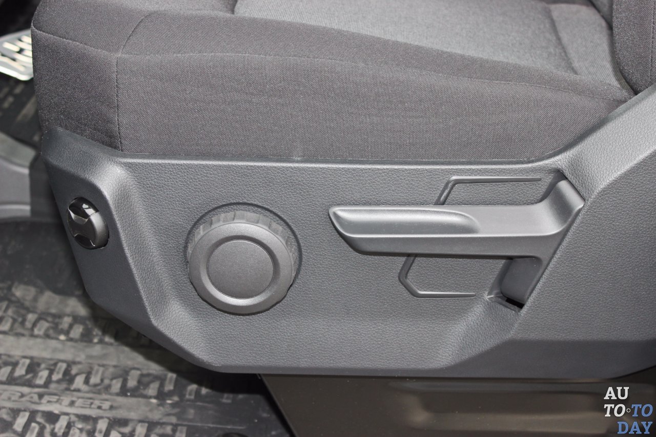 В салон нового коммерческого Volkswagen нужно заходить. Первый шаг на ступеньку, второй уже на уровень пола. В качестве подмоги на передних стойках есть ручки. Но на словах это выглядит сложнее, чем на практике. Водительское кресло Comfort Plus хоть и имеет обивку, аналогичную двум пассажирским, но имеет ряд дополнительных регулировок. Кроме лифта приятно удивило наличие поясничного валика, который двигается и по высоте, и по вылету. Пара опускающихся подлокотников превращает дальнюю дорогу в наслаждение. Кресла для двух пассажиров имеют откидные подушки, под которые можно прятать дорожный набор, сумки и рюкзаки.
