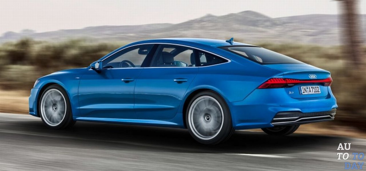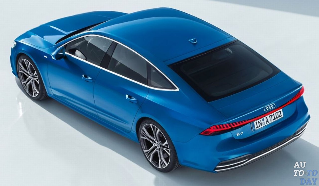 Задняя часть предстоящего автомобиля совершенно новая. По словам Audi, она сужается как у яхты. На двери багажника находится электронный спойлер, который автоматически втягивается на скорости 120 км/ч. Длинные задние фонари, подчеркивающие точеную корму A7 Sportback, теперь имеют плоскую светодиодную ленту – особенность Audi, которую она хочет сделать стандартным оснащением для своих лучших моделей. Они охватывают всю ширину автомобиля. С фронтальной стороны также есть 13 отдельных светодиодных полос с различными наборами анимации, которые активируются в момент разблокировки автомобиля.