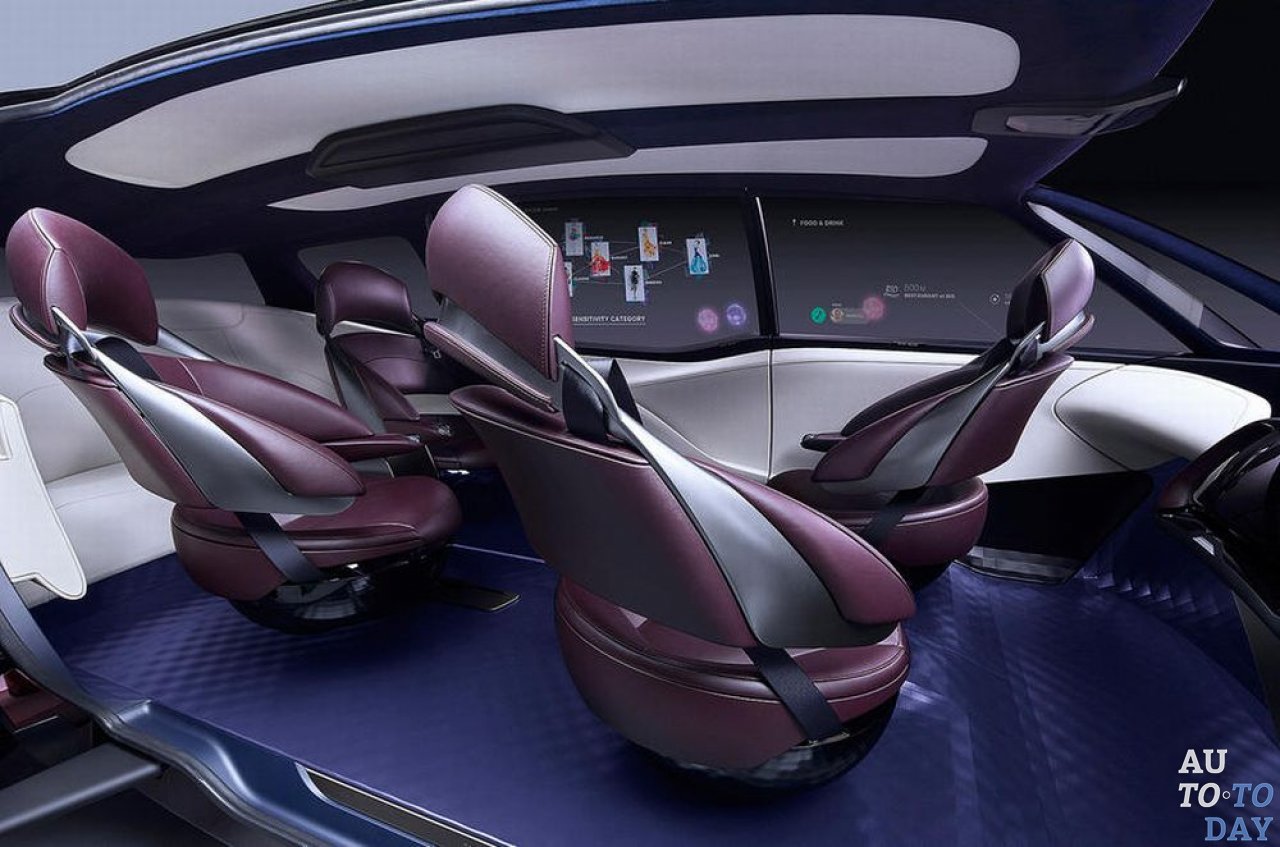 Внутри, как предполагает название автомобиля, основное внимание уделяется комфорту. Сиденья могут регулироваться в соответствии с нужным положением тела, включая полностью откинутый режим для сна. Также имеются многочисленные цифровые дисплеи и проекционные экраны, а положение посадочных мест может быть изменено, к примеру, для удобства в разговоре или создания личного пространства. Примечательно, что самые задние сиденья выполнены в диваноподобной конфигурации, а передние два ряда состоят из отдельных кресел.