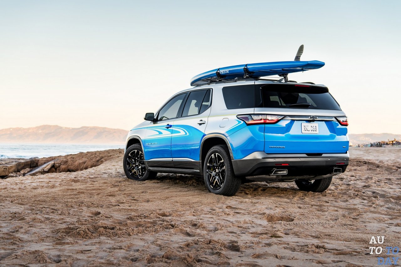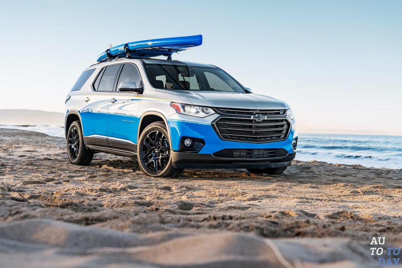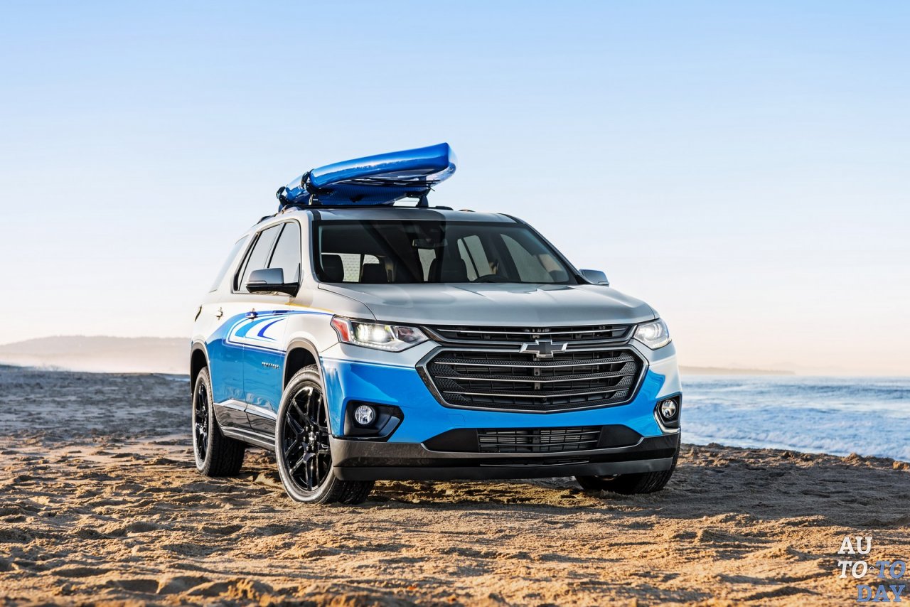 Обратный отсчет открытий до SEMA Show продолжает компания Chevrolet, которая сняла маску секретности с концептуальной модели Traverse SUP. Новый кроссовер имеет двухцветный экстерьер с волновой графикой синего цвета и желтыми полосами. Он также отличается темно-серыми акцентами, блестящими черными молдингами и держателями для доски Paddleboard от Thule на крыше.