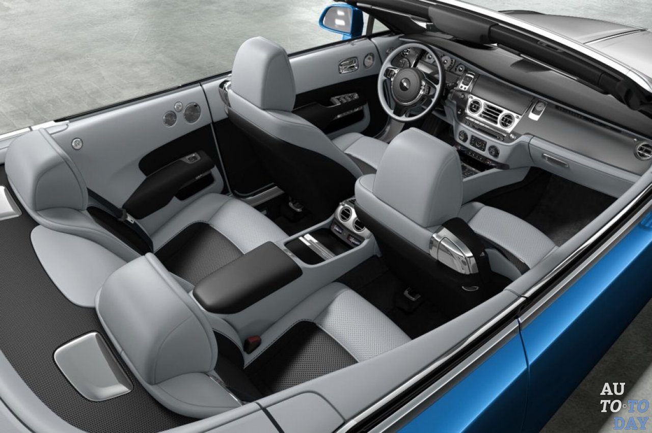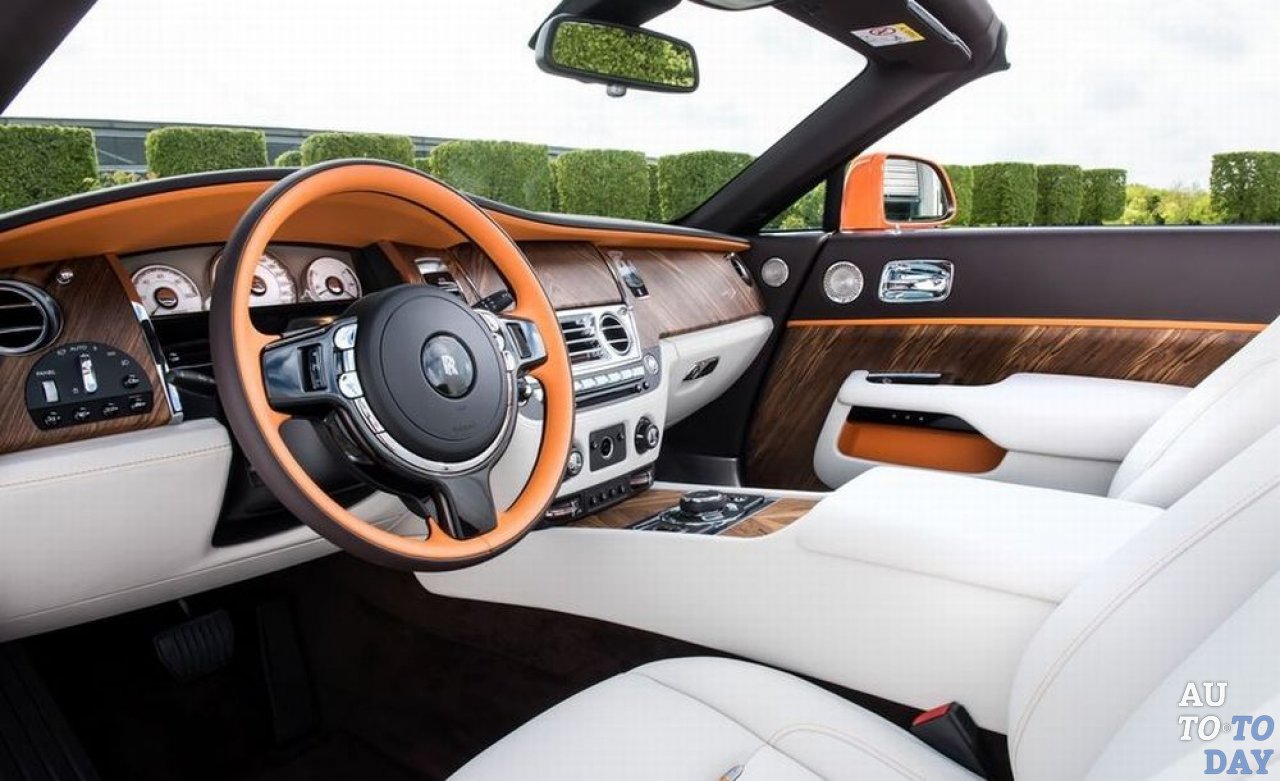 Lago di Como Dawn имеет сшитый вручную серо-черный интерьер с акцентами из полированного алюминия. Между тем, Saint-Tropez Dawn может похвастаться ярко-оранжевыми и шоколадно-коричневыми тонами. Некоторые внутренние элементы и дверные панели изготовлены из пористой древесины Canadel.
