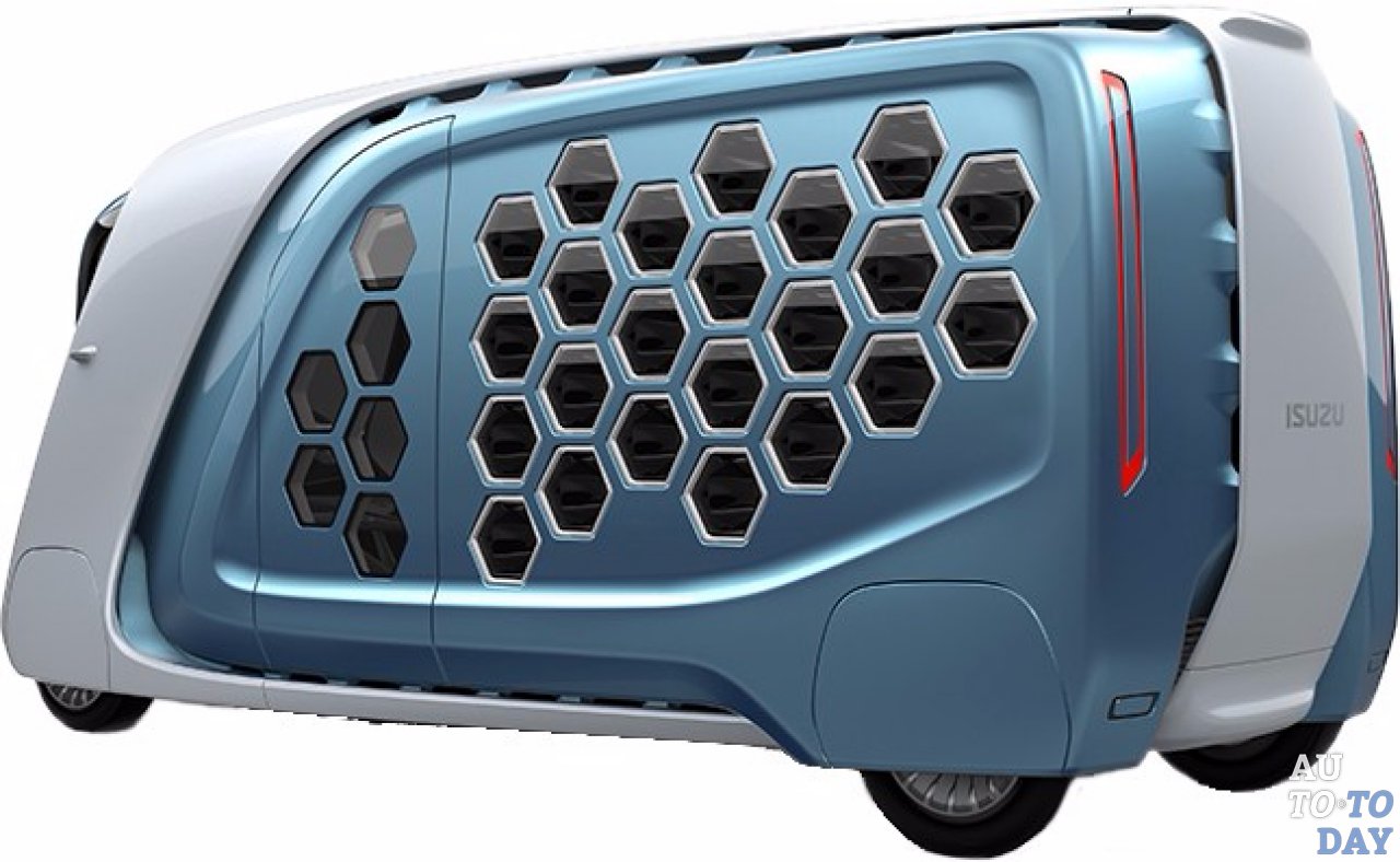 Сотовый узор - это не просто упражнение по дизайну, поскольку каждое окно на самом деле является его собственным отсеком для хранения. Isuzu говорит, что это обеспечивает «хороший компромисс между силой и пространством, необходимой для хранения».