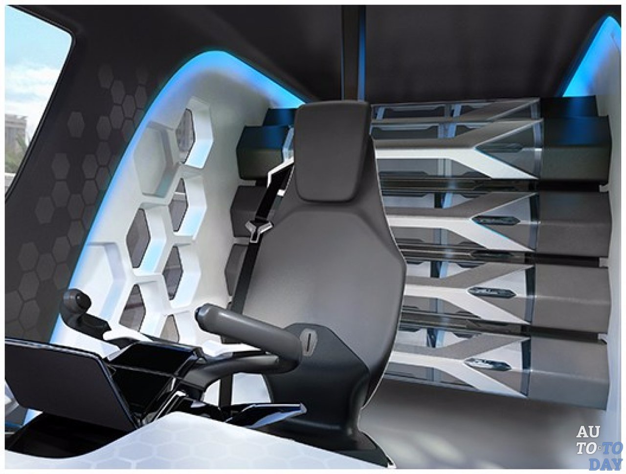Цилиндрические отсеки для хранения занимают много внутреннего пространства, но это транспортное средство доставки, и оно предназначено только для размещения одного водителя. На сидении за убирающимся рулевым колесом водители найдут высокотехнологичный заголовок, который проецирует информацию на базу ветрового стекла.