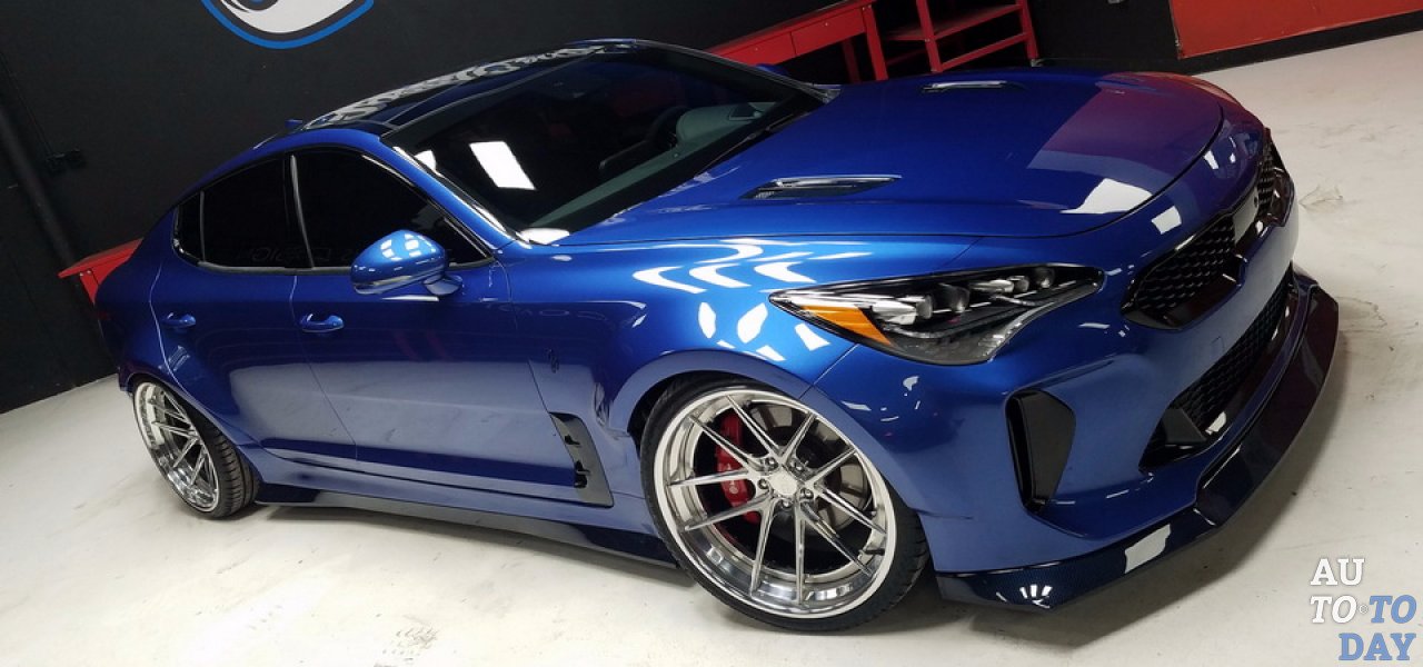Теперь у нас есть все детали, например, подвеска была понижена на 1,4 дюйма спереди и 1,2 дюйма сзади, наличие 21-дюймовых кованых колес Keen и, конечно же, легкого широкого комплекта кузова, что позволяет новому Stinger без страха ездить на вісокой скорости. Как вы можете видеть, задняя часть особенно агрессивна благодаря массивным диффузорам и четырехугольным выхлопным наконечникам.