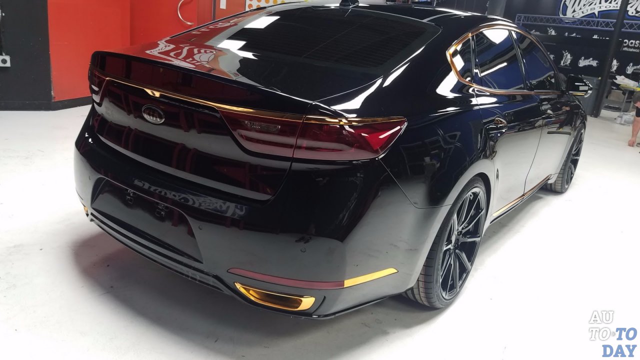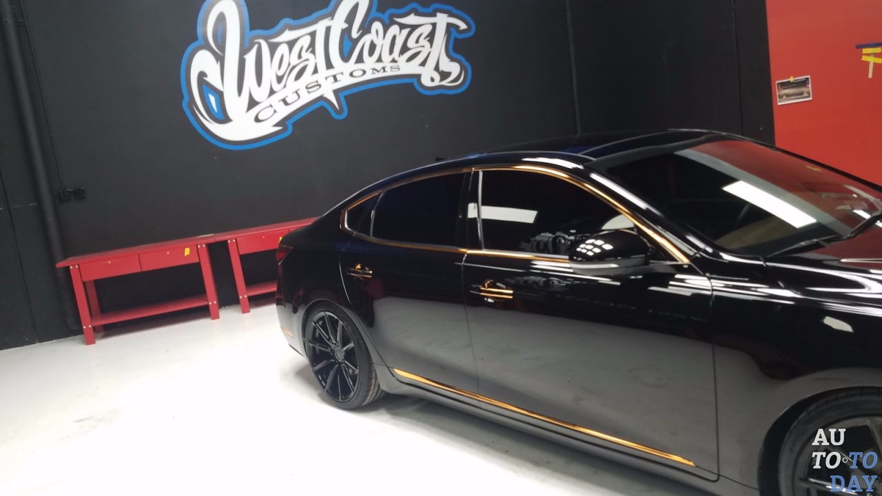 Этот Kia Cadenza Obsidian был также изготовлен West Coast Customs, имеющий пониженную подвеску с жесткими спортивными пружинами, обычными 20-дюймовыми блестящими колесами Keen и специальной металлической черной краской с ультратемными керамическими окнами.