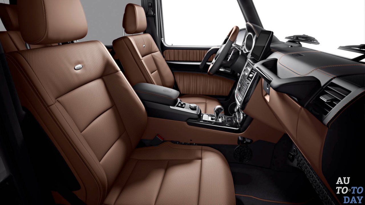 G350d Limited Edition, например, окрашен в Mocha Black metallic, с матовой алюминиевой отделкой, спортивным пакетом, 19-дюймовыми 5-спицевыми AMG-сплавами, тонированными окнами, люком с электроприводом и дополнительной отделкой из нержавеющей стали и хрома. Интерьер украшен светло-коричневой кожей Nappa со светло-коричневой верхней строчкой, звуковой системой Harman Kardon и т.д.
