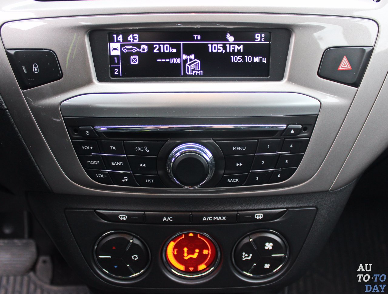 С недавних пор для С-Elysee опционально доступен 7-дюймовый цветной экран мультимедийной системы, как и на старших моделях бренда, умеющий дружить со смартфонами, показывать сервисную информацию и транслировать картинку с камеры заднего вида. На герое нашего теста этих радостей нет, но и штатная черно-белая аудиосистема позволяет подключать телефоны, проигрывать с них медиафайлы, отличаясь отличной «цепкостью» нащупанных в эфире радиостанций. Удобно, что управление аудио, как и круиз-контролем выведено на два отдельных подрулевых блока. Само же рулевое колесо не изменилось, и по прежнему не регулируется по вылету, только по вертикальной оси.