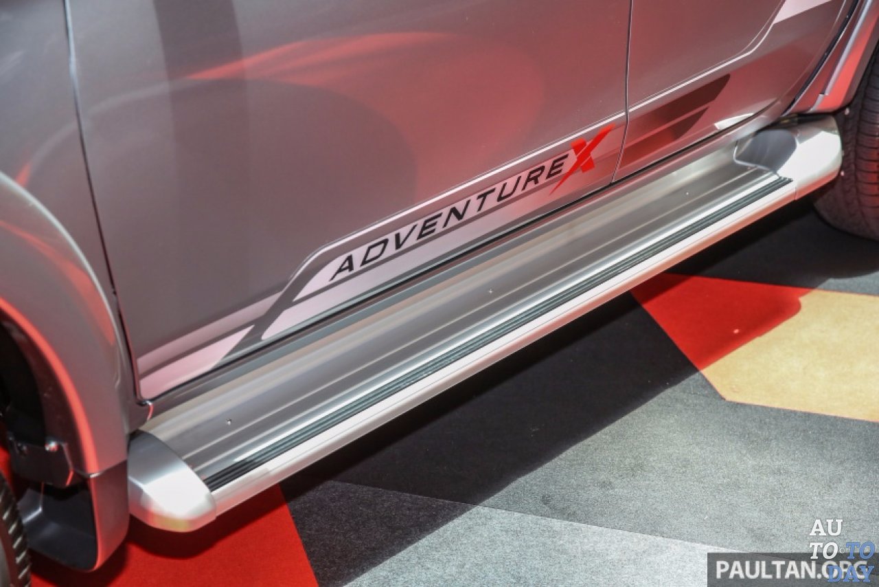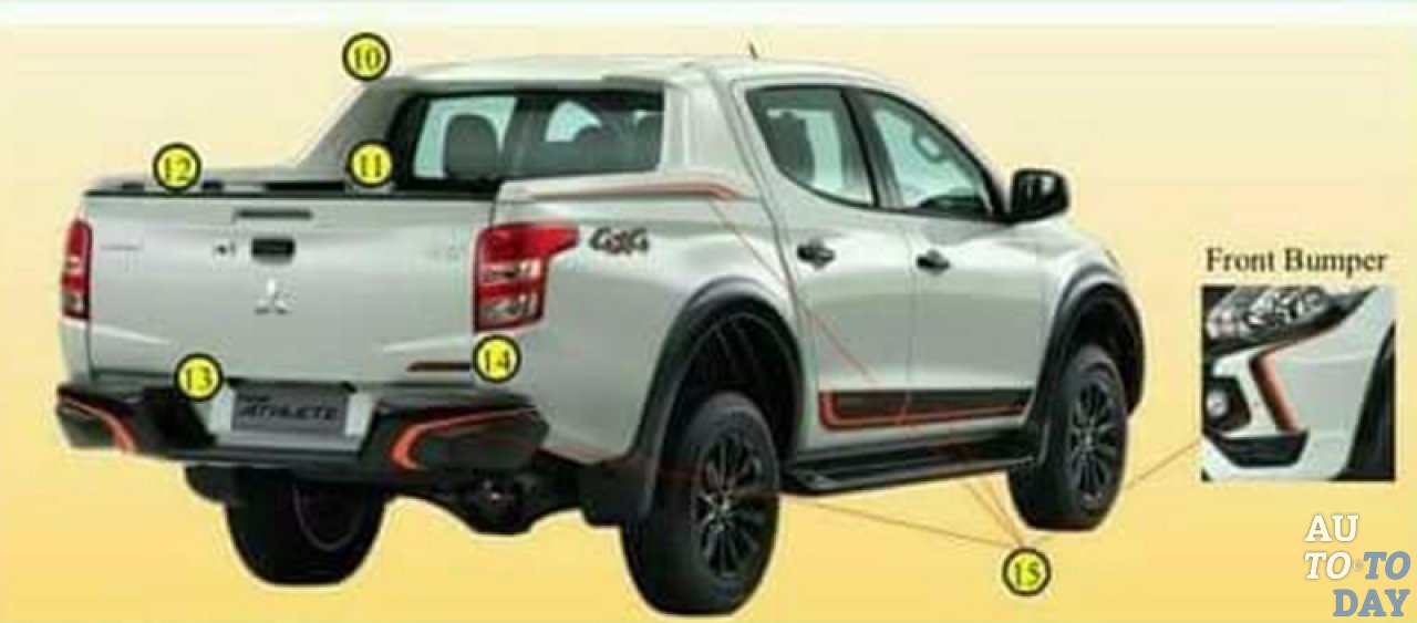 Снаружи передняя часть пикапа Mitsubishi L200 получает решетку из сетки с черными полосками, а передний бампер получает черную вставку, как и передние противотуманные фары, с черными и оранжевыми вставками на переднем бампере. Передние колесные арки имеют удлинения черного цвета, а также черные боковые зеркала.