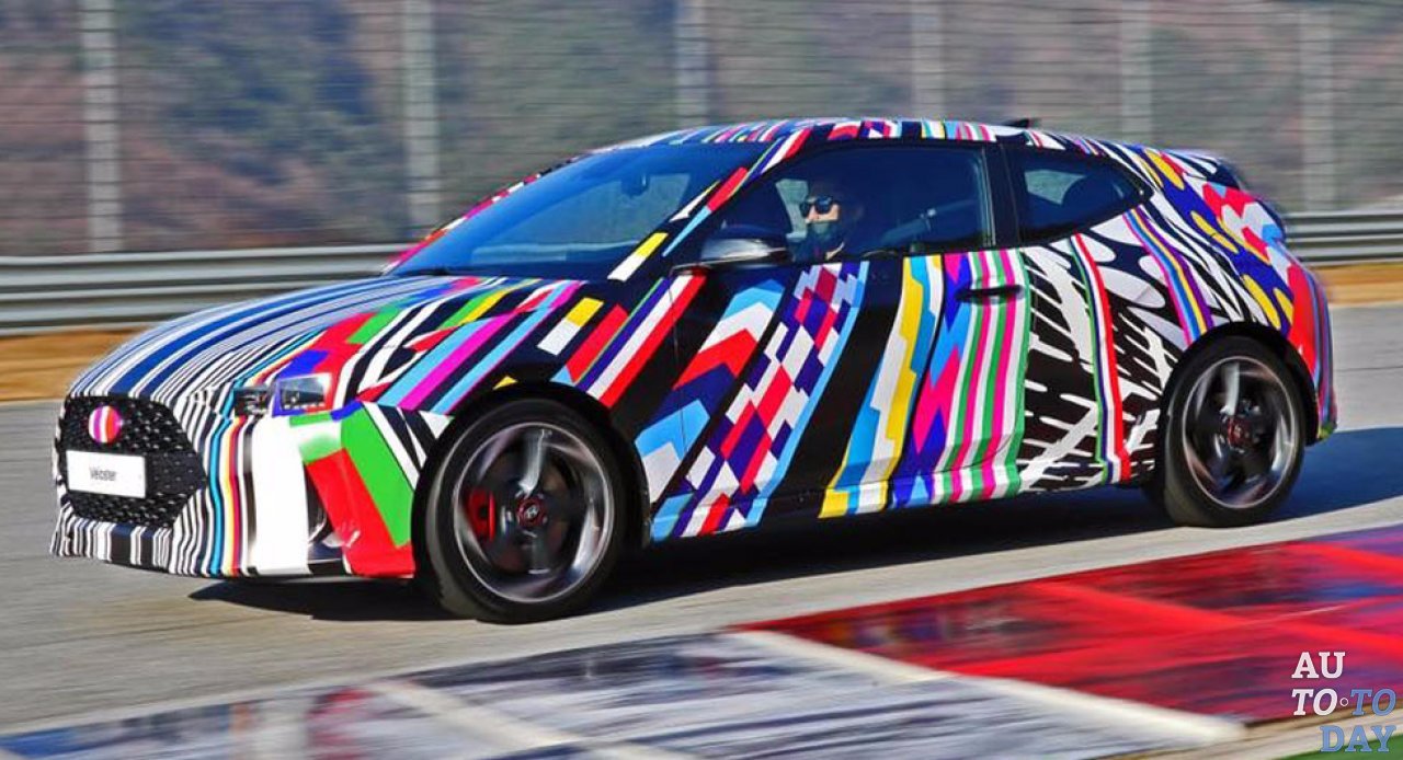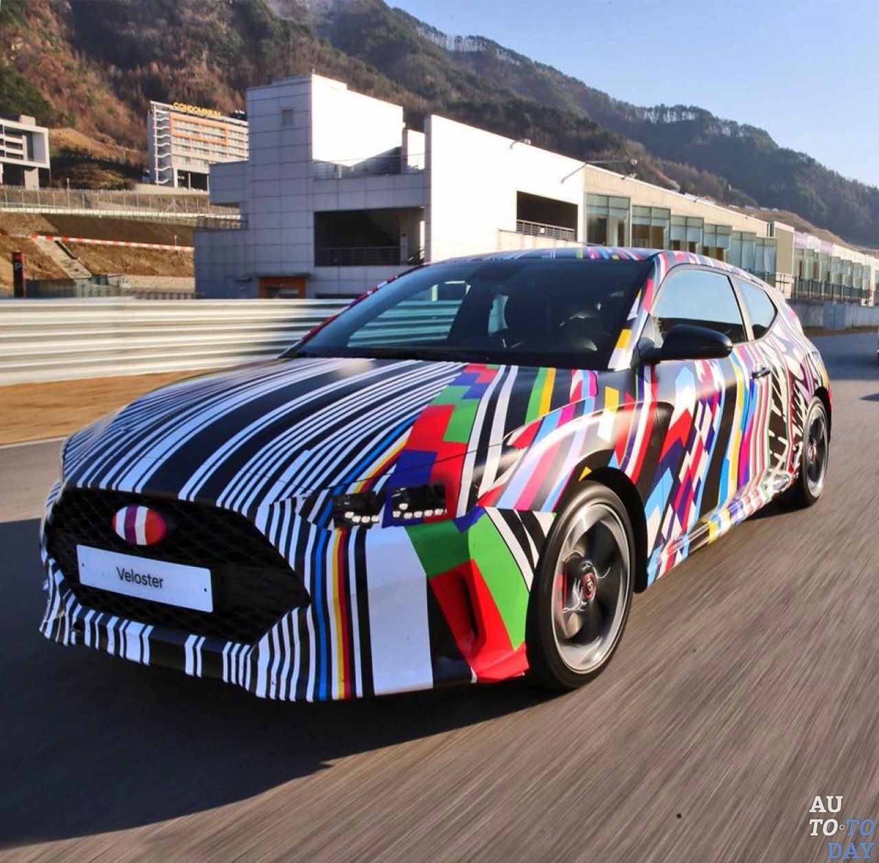 Спереди взгляд притягивает массивная решетка, которая выглядит более вертикально, чем у ее предшественника. Veloster окружен светодиодными лампами и вертикальными воздухозаборниками, спортивный стиль раскрывается еще больше, ведь незамаскированное изображение показывает вспышки мускулистого крыла, лобовое стекло и более купеобразную крышу. Задний бампер выступает немного дальше от задней двери, в отличие от конструкции с минимальным смывом на уходящей модели.