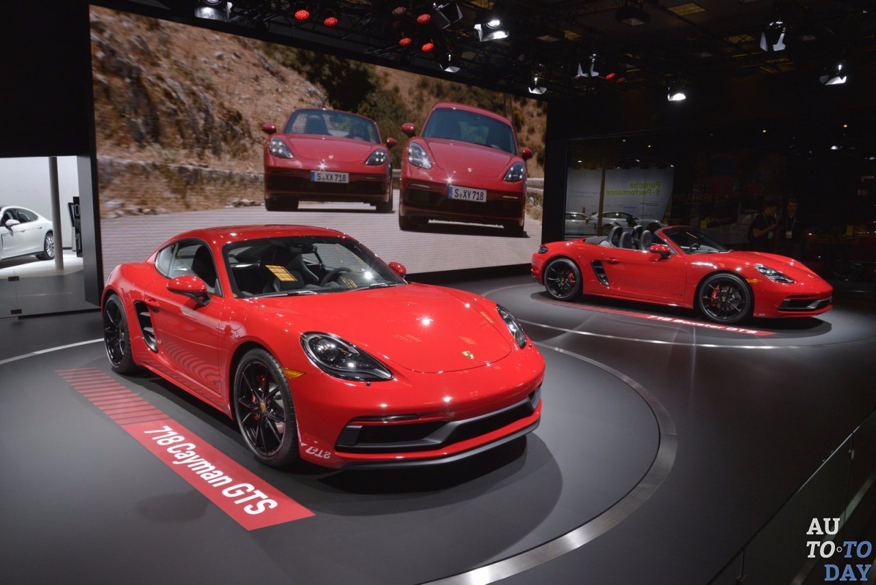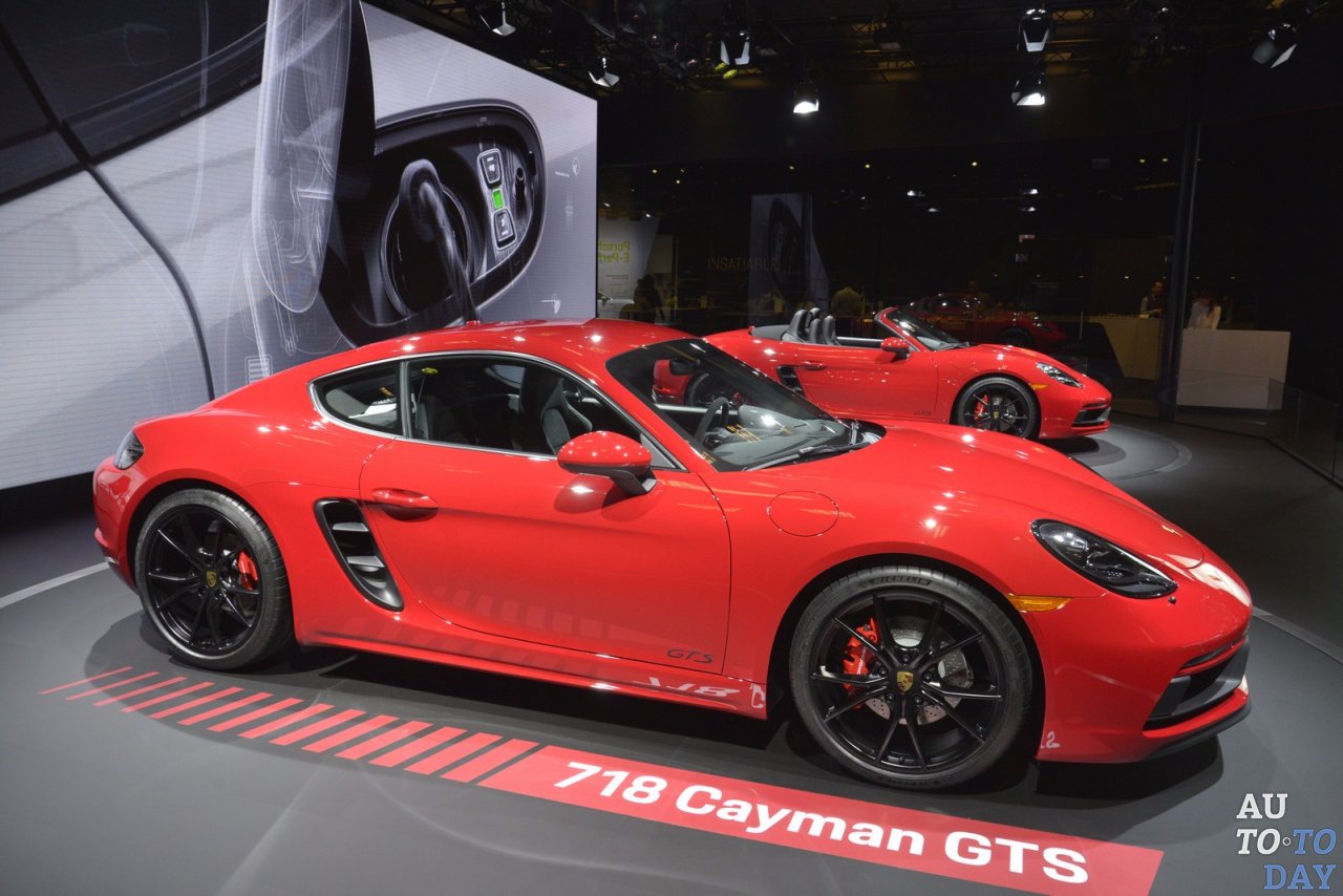 Представленные спорткары 718 Boxster и 718 Cayman получили мощную модификацию, преподнесшую их на уровень выше. Автомобили версии GTS получили новый передний бампер, интересные детали кузова, тонированные фары, черные значки GTS и 20-дюймовые диски с сатиново-черной отделкой.