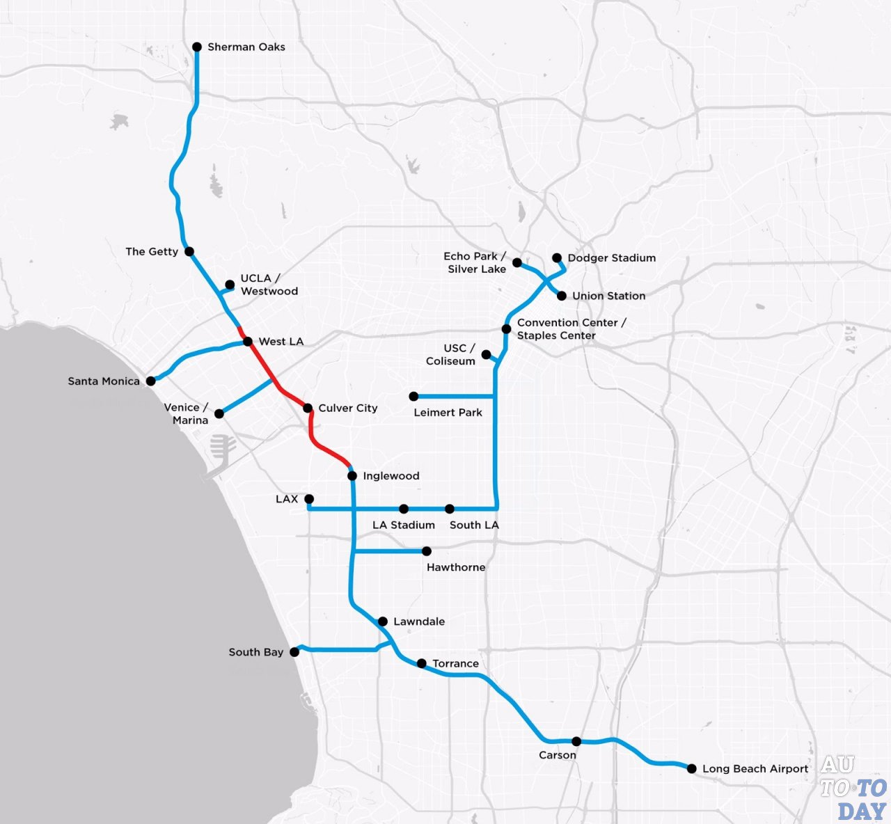 Отмечается, что самый масштабные кусок туннеля проложат от Шерман-Окса до аэропорта Лонг-Бич, его суммарная длина составит примерно 64 км. Вдобавок, будет предусмотрена масса остановок, например, LAX, LA Stadium или South LA. Подобный план можно смело назвать весьма амбициозным. Однако, это вынужденная мера, которая способна значительно облегчить жизнь.