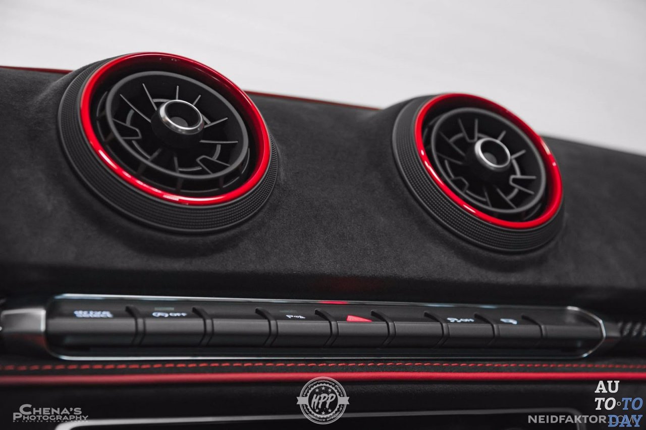 Немецкое тюнинг-ателье Neidfaktor подготовило для «заряженого» седана Audi RS3 специальный подарок на Рождество. Благодаря опытным специалистам автомобиль получил стильную отделки салона из алькантры с эксклюзивными ярко-красными акцентами.
