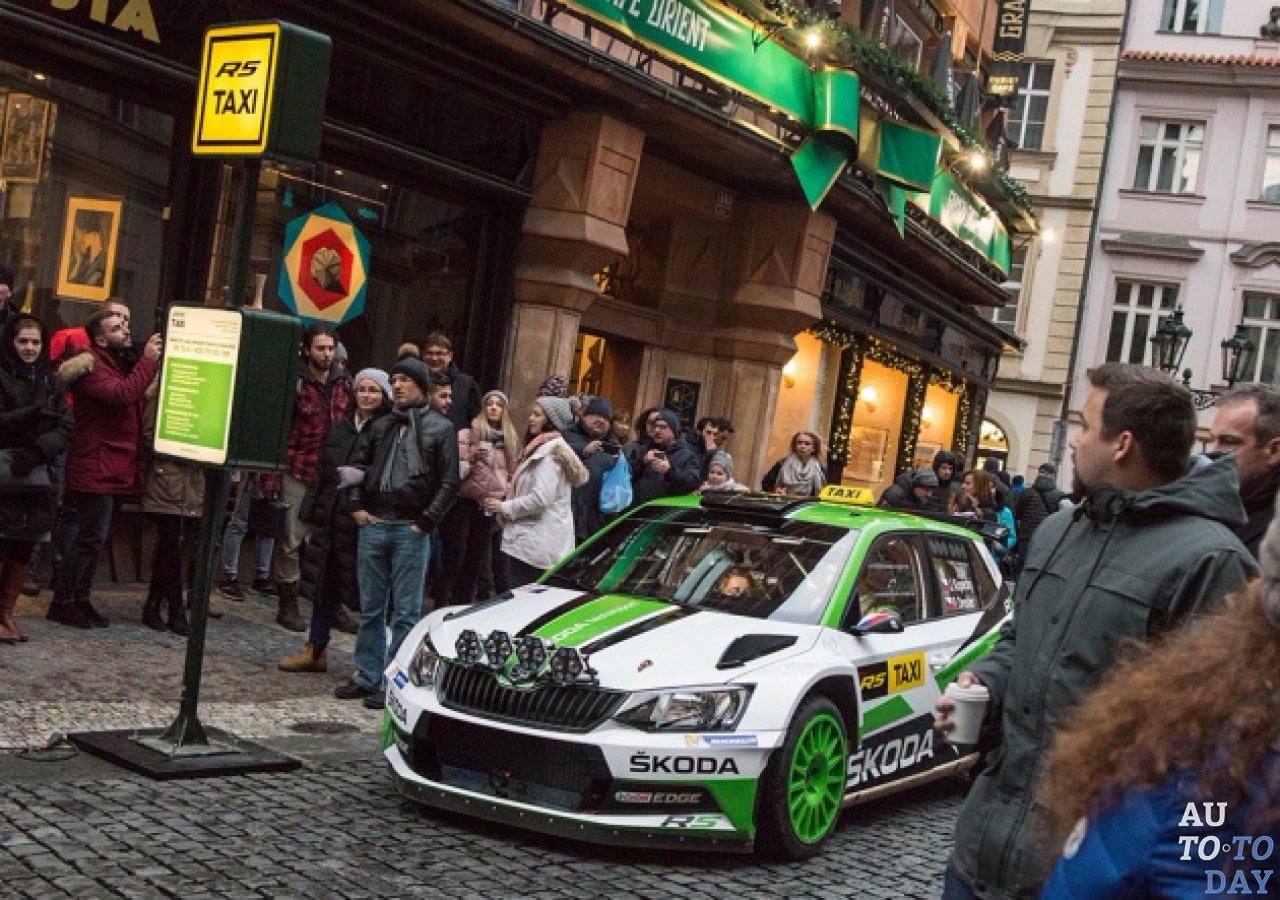 Отпраздновать победу в чемпионате мира по ралли в категории WRC2 компания Skoda решила особым образом, представив Fabia R5 с тем же водителем, что руководил автомобилем на соревнованиях в виде такси, разъезжающего по улицам Праги.