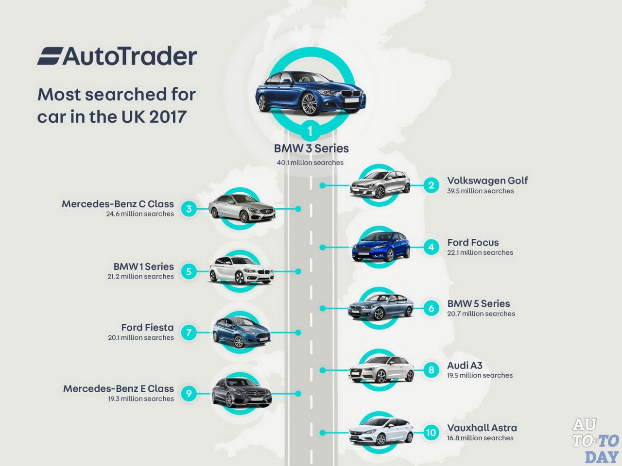 Крупнейший онлайн-рынок Великобритании новых и подержанных автомобилей AutoTrader показал 10 самых популярных автомобилей.