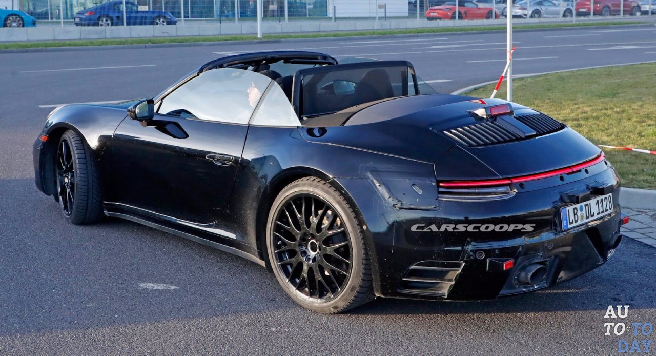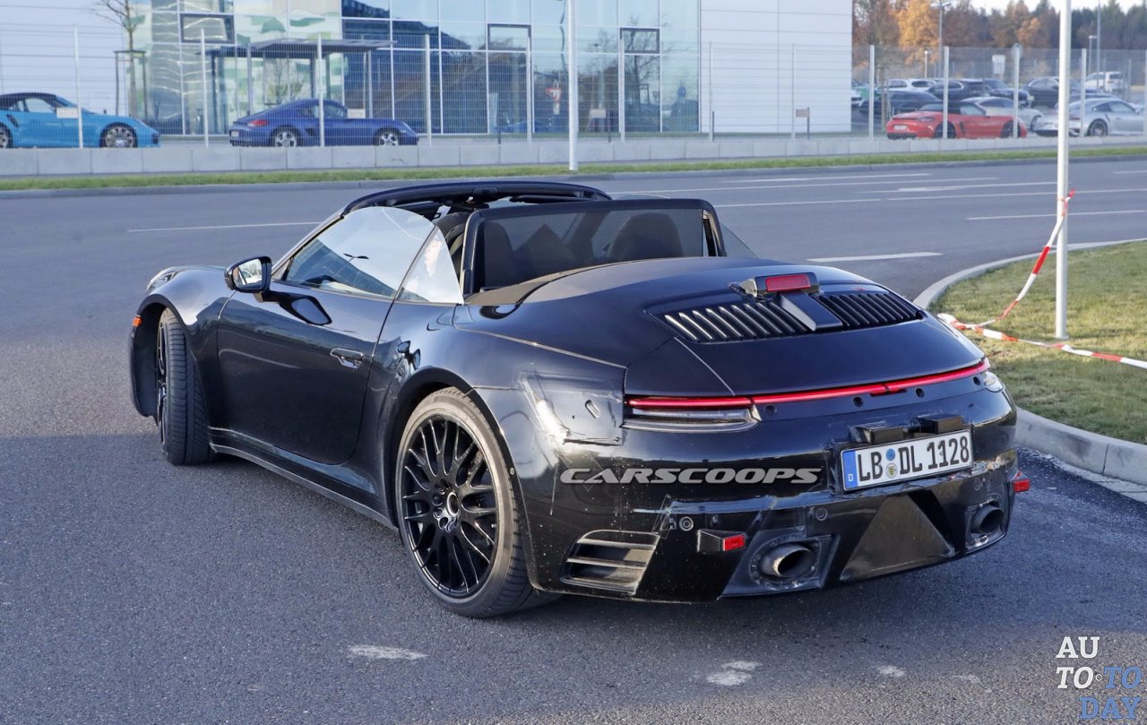 Поскольку этот прототип является кабриолетом, нельзя не подчеркнуть, что задний изгиб модели во многом напоминает предшественника, даже учитывая, что кузова автомобилей совершенно разные. Также, вполне возможно, что задние фары модификации имеют немного иное расположение, однако для подтверждения данной теории необходимо снять весь камуфляж с нового поколения Porsche 911.