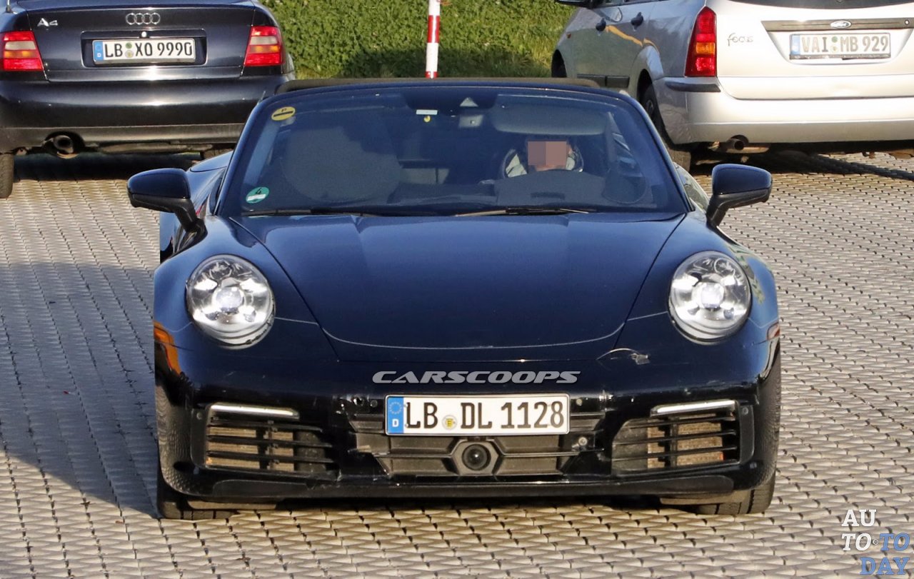 Кабриолет следующего поколения Porsche 911 с эффектным камуфляжем опять попал под прицелы камер во время тестирования при относительно невысокой температуре воздуха.