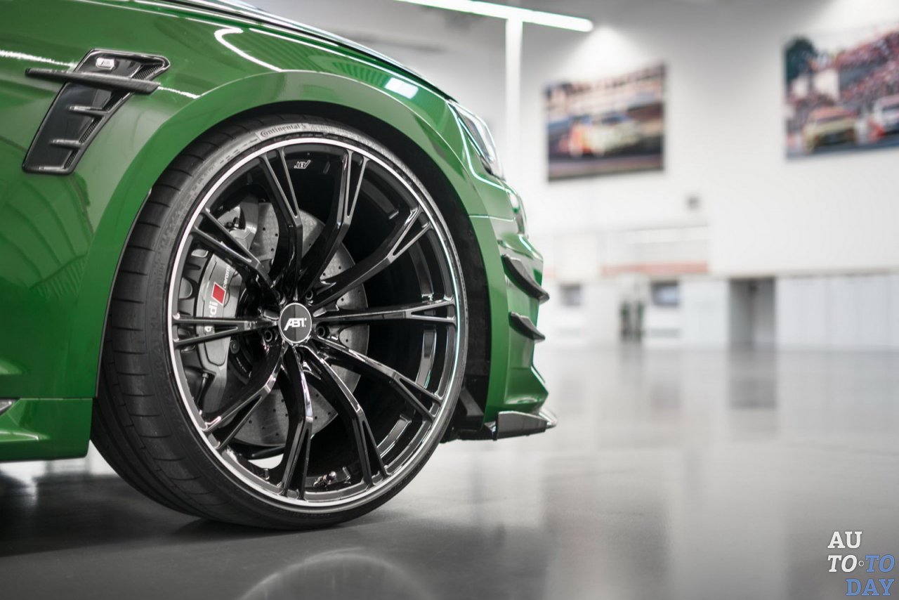 Улучшенный Audi будет окрашен в насыщенный зеленый цвет и дополнен специальной подвеской, созданной компанией KW, а также более жесткими амортизаторами, карбоновым диффузором, встроенным в бампер и 21-дюймовыми колесными дисками, окутанными в шины 275/25.