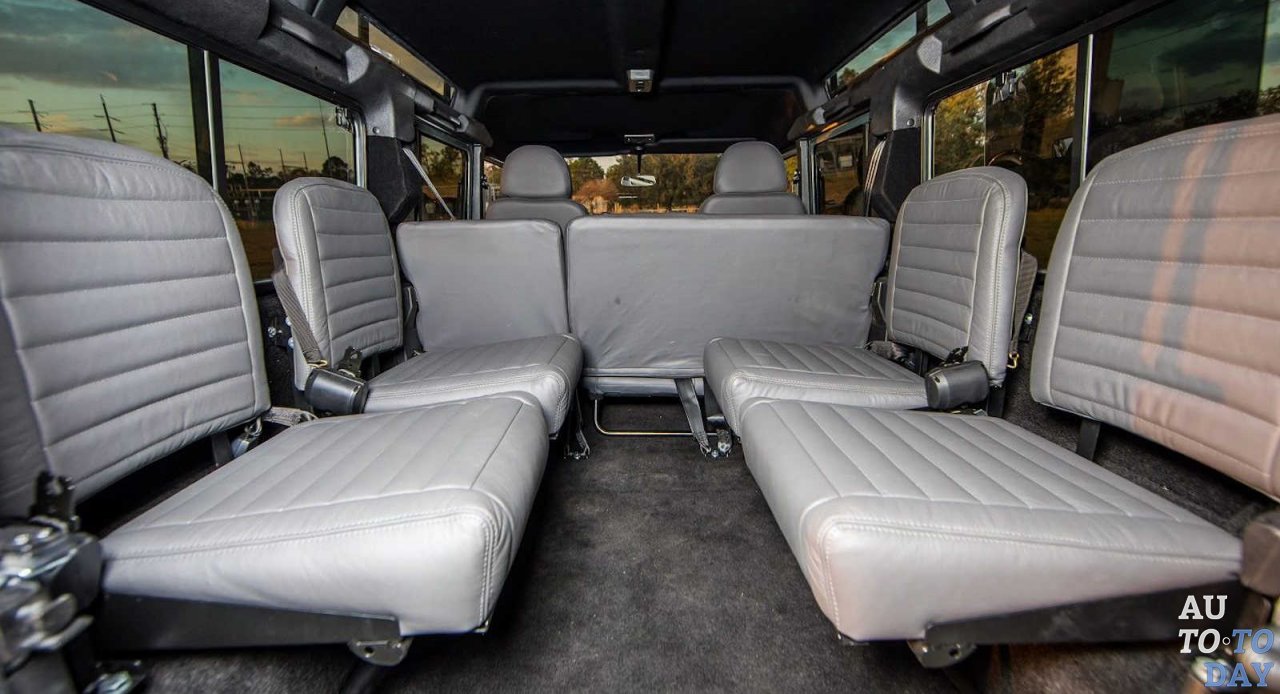 Интерьер автомобиля во многом унаследовал классический стиль Defender, но при этом получил новые сидения с высококачественной кожаной обивкой, деревянный руль Nardi, новую панель приборов, информационно-развлекательную систему Kenwood с поддержкой Apple CarPlay и Android Auto, а также камеру заднего вида.