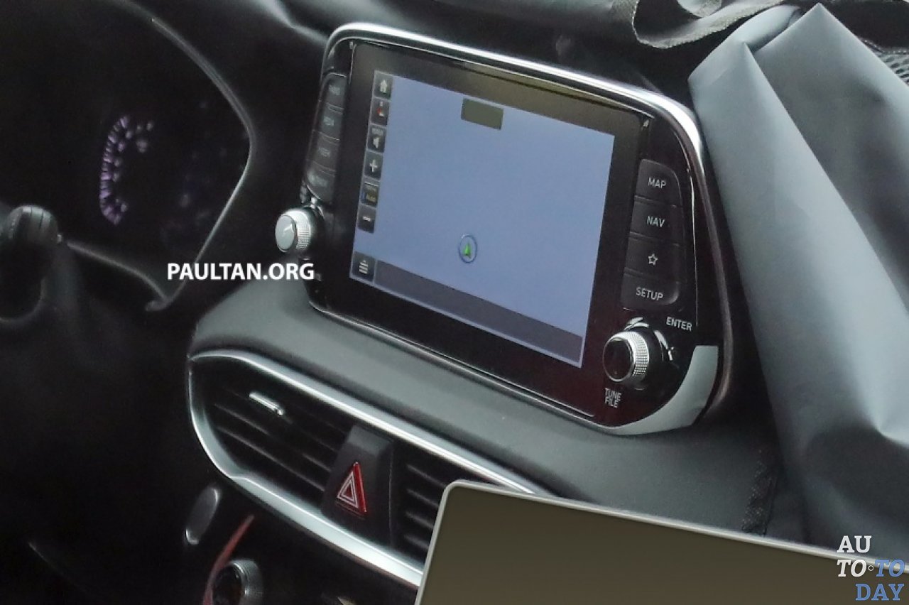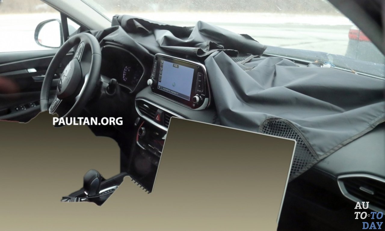 Судя с представленных изображений четвертое поколение Hyundai Santa Fe во многом унаследует компактный кроссовер Hyundai Kona и получит аналогичное рулевое колесо вместе с «парящей» информационно-развлекательной системой, которая стала довольно популярной в последнее время. При этом данные фотографии не дают понять используется здесь полностью цифровая приборная панель или перед водителем расположен обычный аналоговый вариант, зато очевидно, что ручки и элементы управления климатической системой остались неизменными.